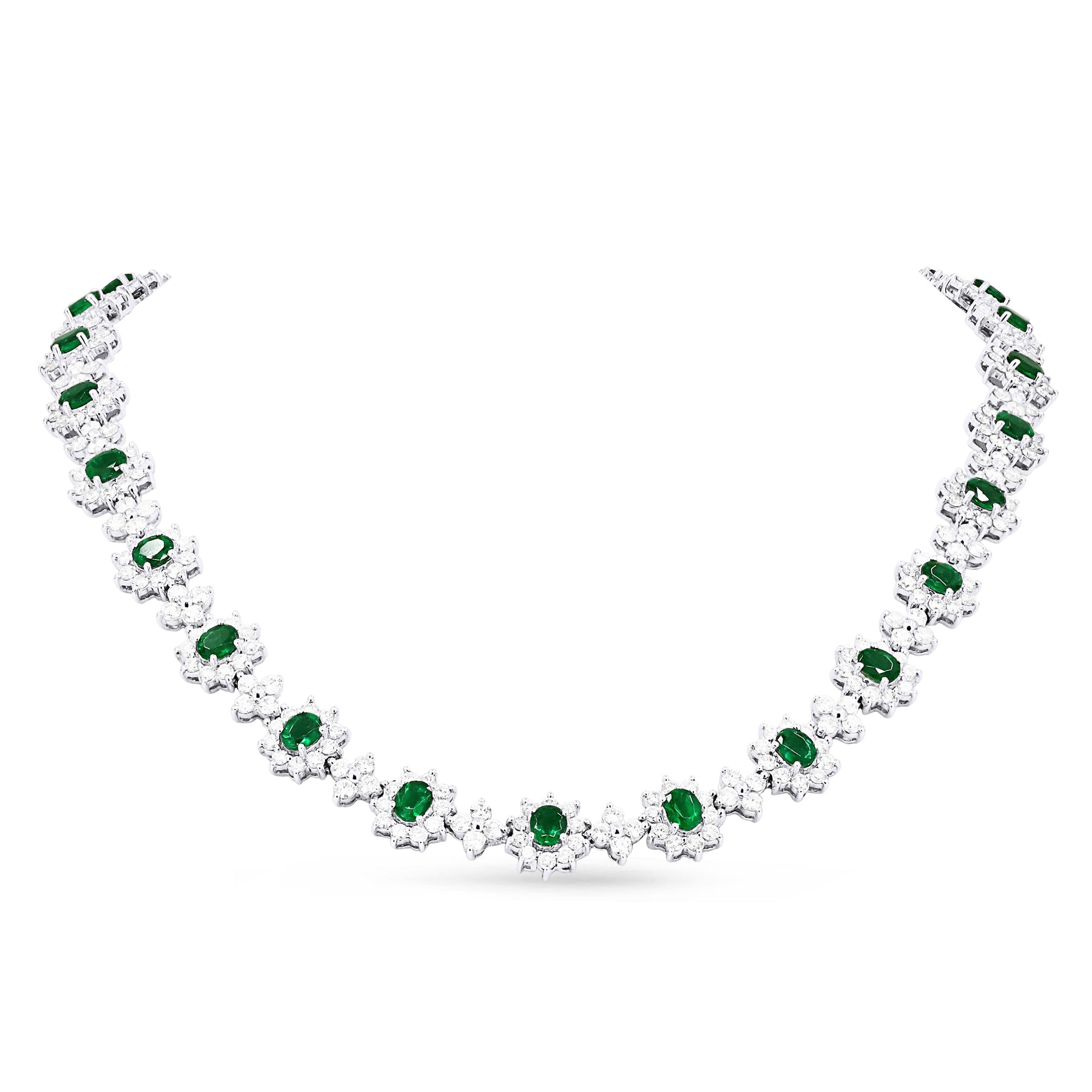 Beautiful Hand Crafted 18K White Gold  Emerald And Diamond Arianna Collection Necklace