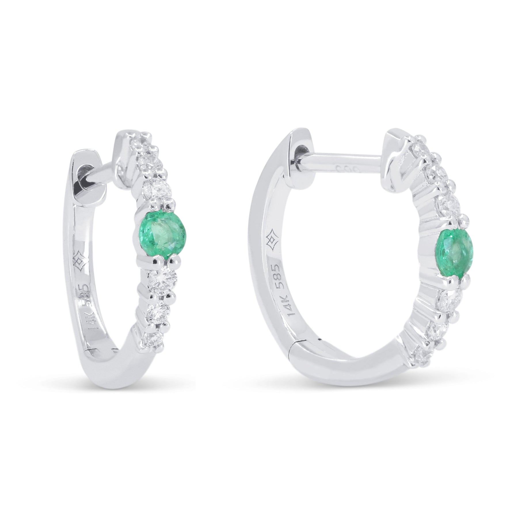 Beautiful Hand Crafted 14K White Gold  Emerald And Diamond Arianna Collection Hoop Earrings With A Hoop Closure