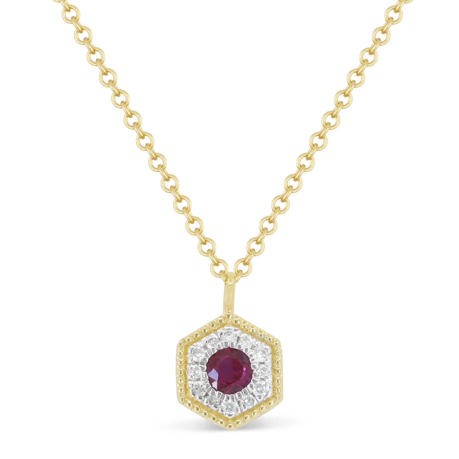 Beautiful Hand Crafted 14K Yellow Gold 3MM Ruby And Diamond Arianna Collection Necklace