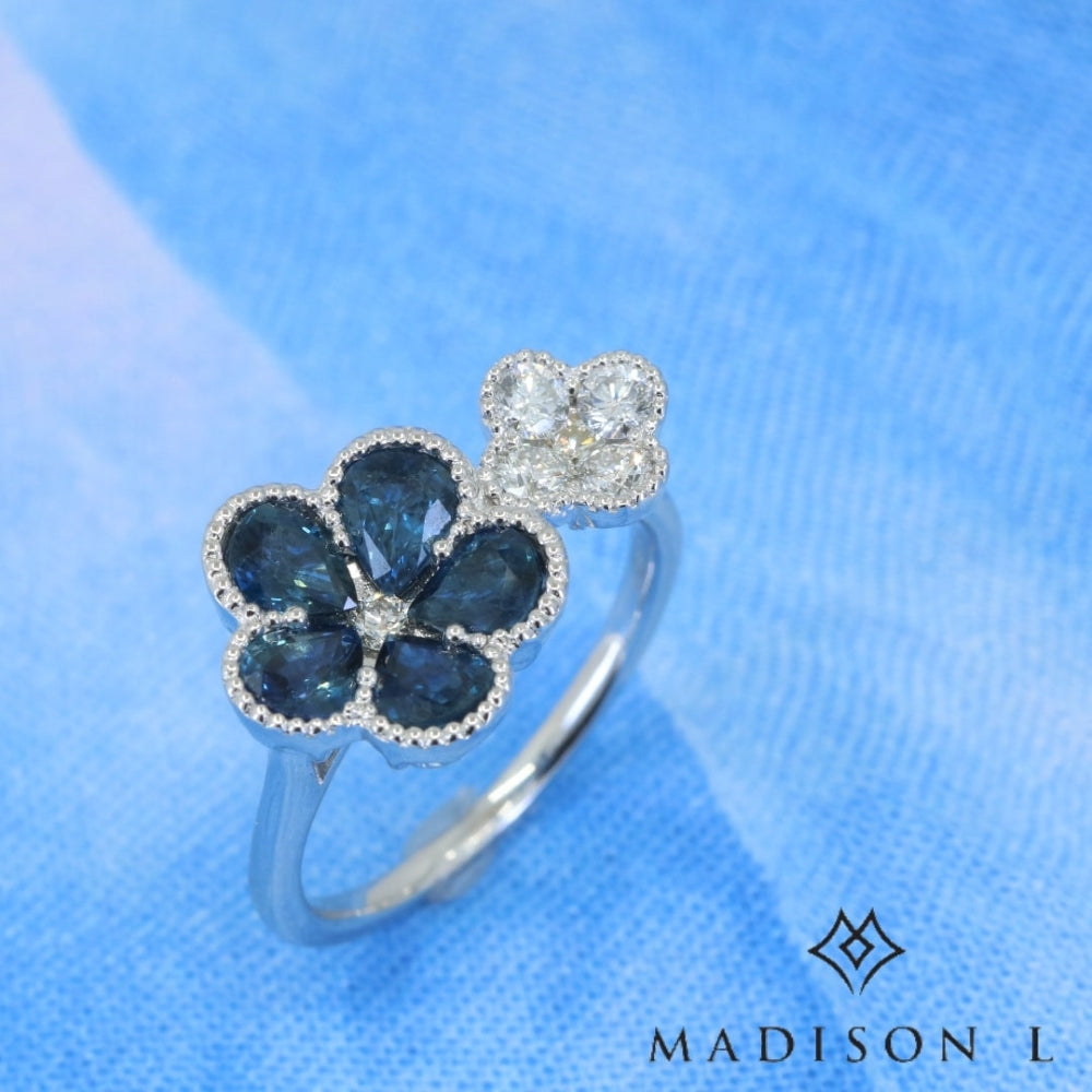 Beautiful Hand Crafted 14K White Gold  Sapphire And Diamond Arianna Collection Ring