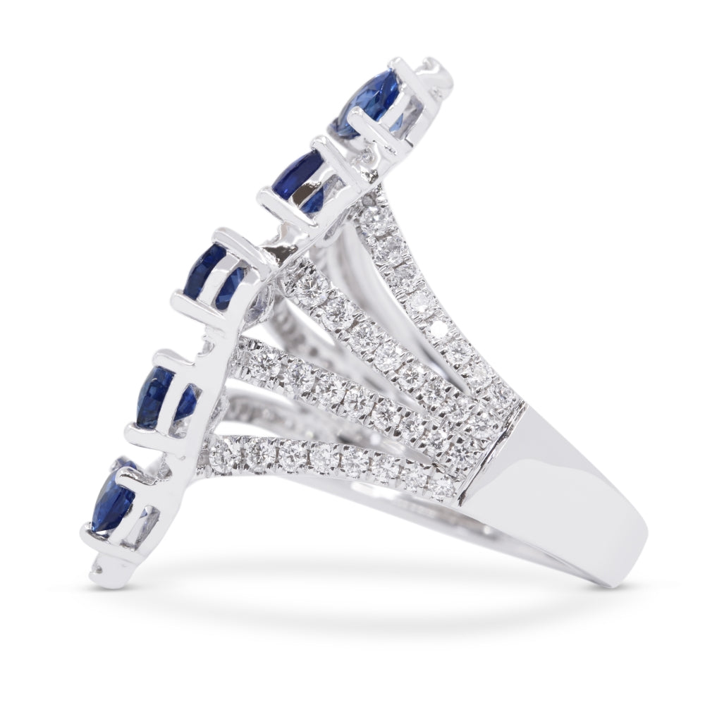 Beautiful Hand Crafted 14K White Gold  Sapphire And Diamond Arianna Collection Ring