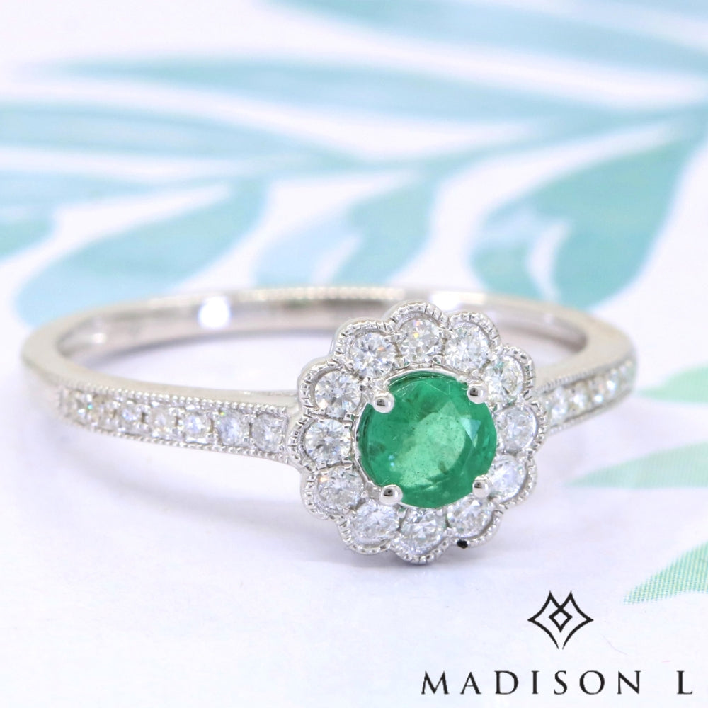R1772EMW 14K White Gold Arianna Collection Emerald And Diamond Ring