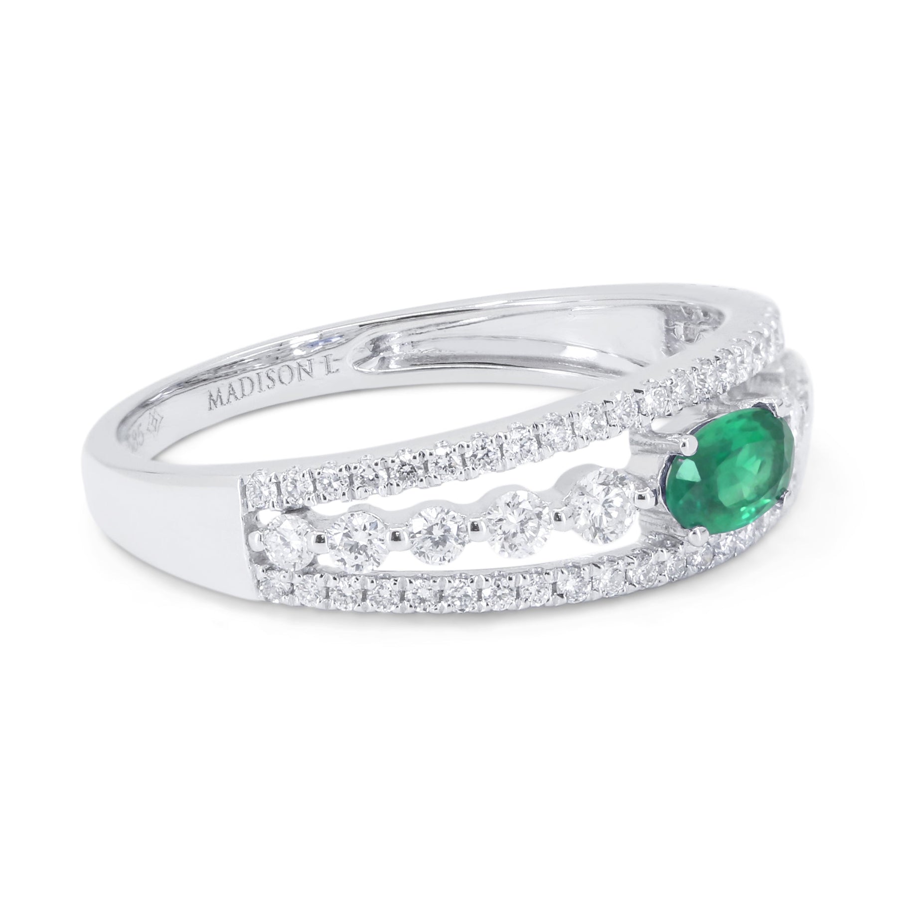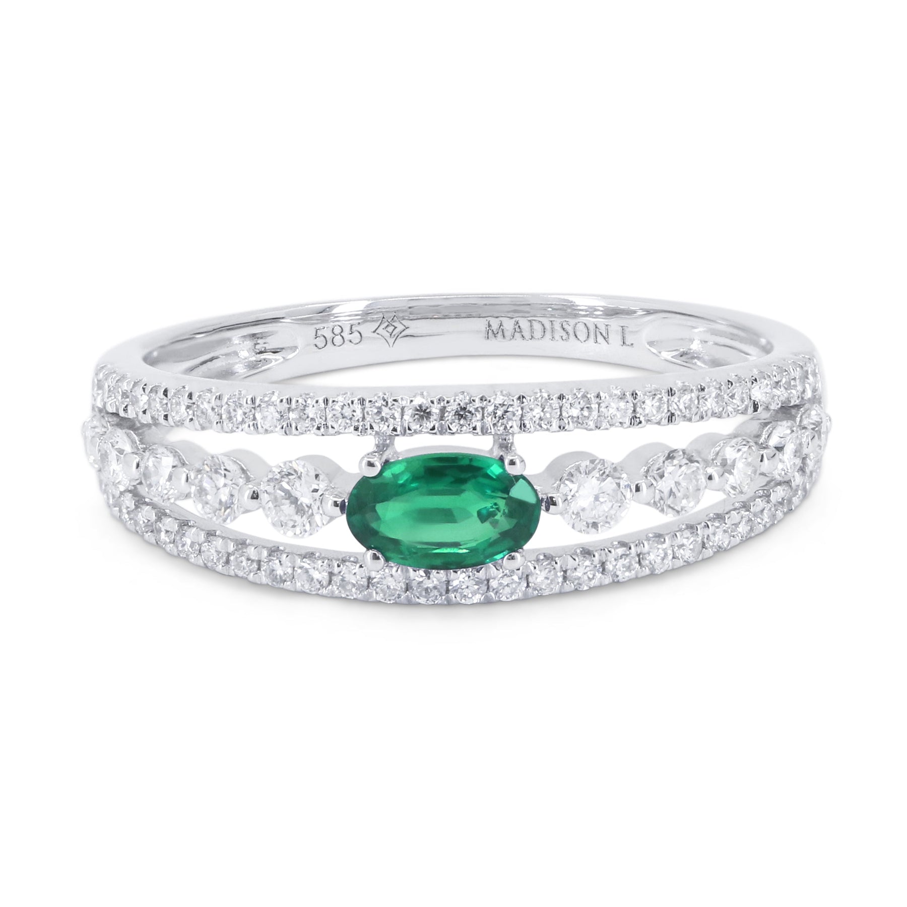 Beautiful Hand Crafted 14K White Gold 3X5MM Emerald And Diamond Arianna Collection Ring