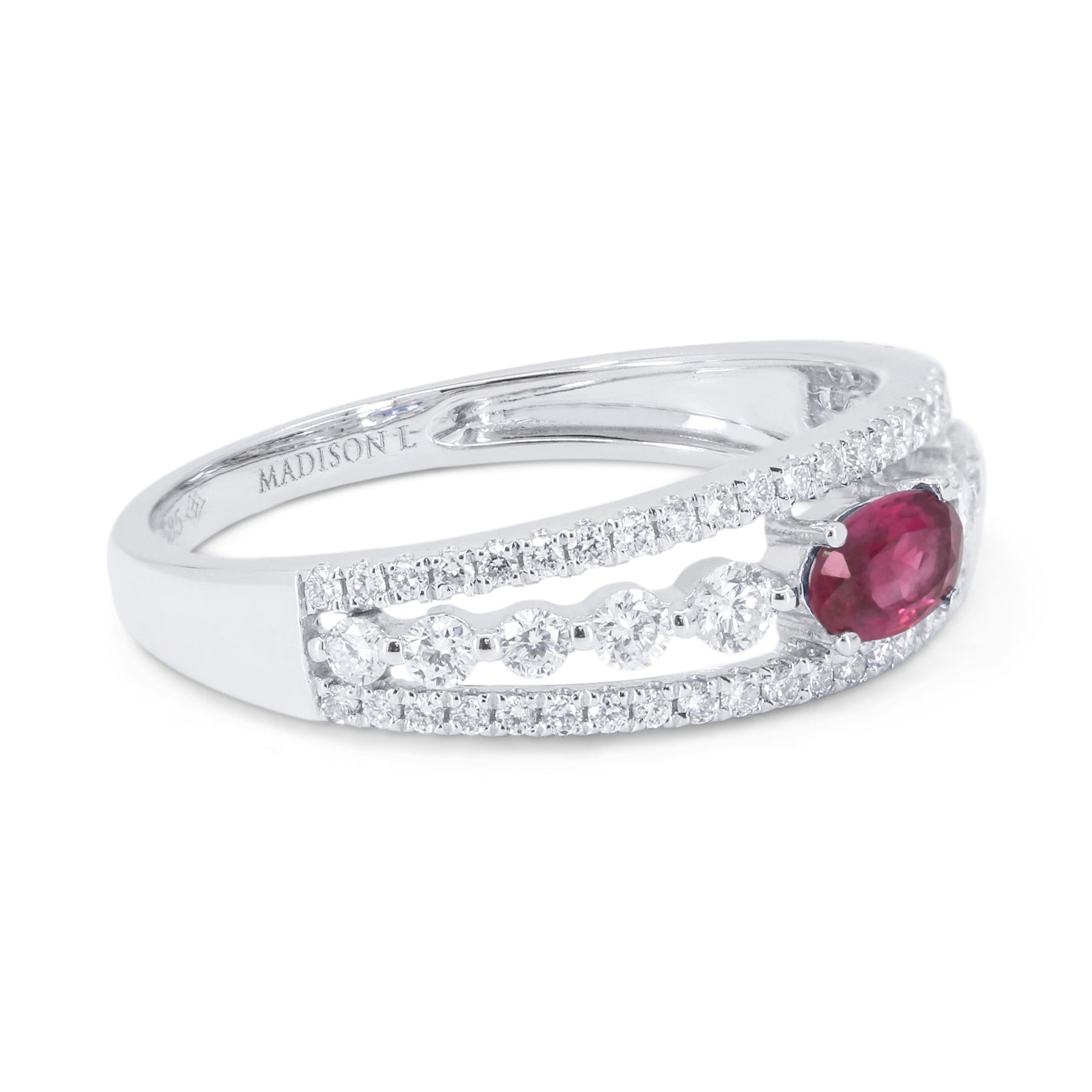 Beautiful Hand Crafted 14K White Gold 3X5MM Ruby And Diamond Arianna Collection Ring