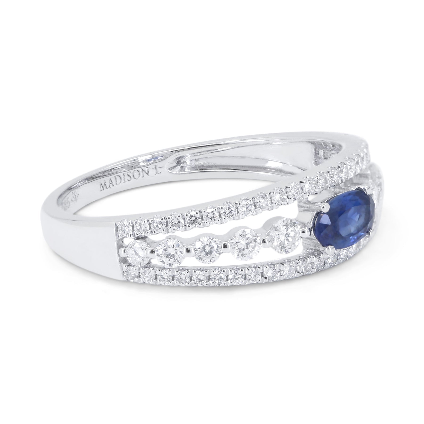 Beautiful Hand Crafted 14K White Gold 3X5MM Sapphire And Diamond Arianna Collection Ring