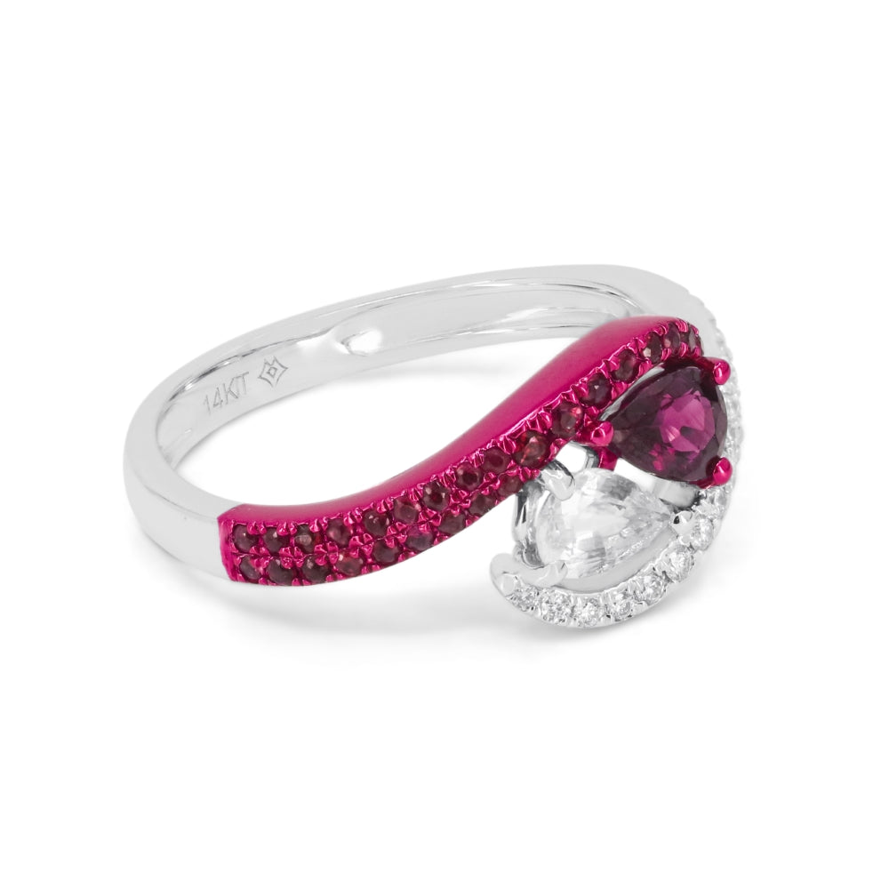 Beautiful Hand Crafted 14K White Gold  Ruby And Diamond Arianna Collection Ring