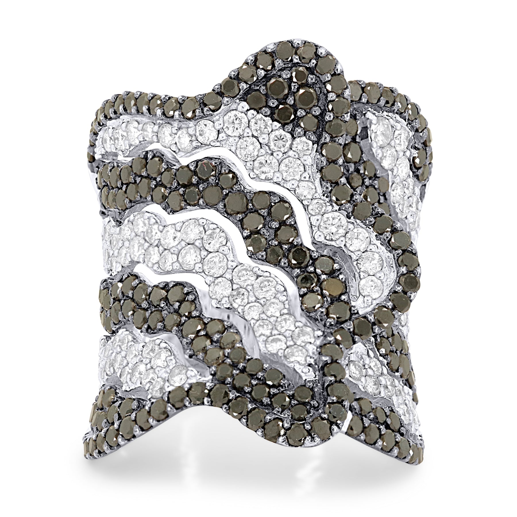 Beautiful Hand Crafted 18K White Gold  Black Diamond And Diamond Aspen Collection Ring