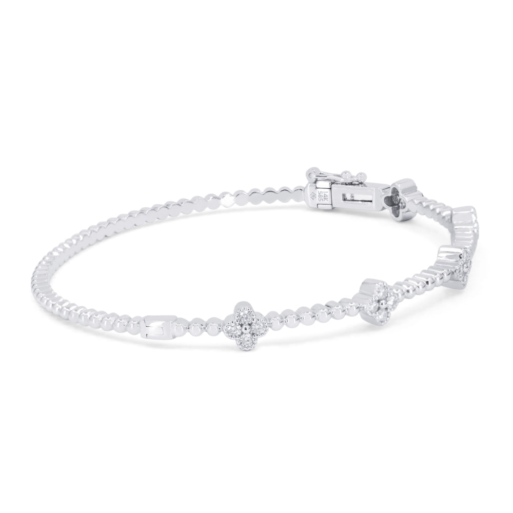 Beautiful Hand Crafted 14K White Gold White Diamond Milano Collection Bangle