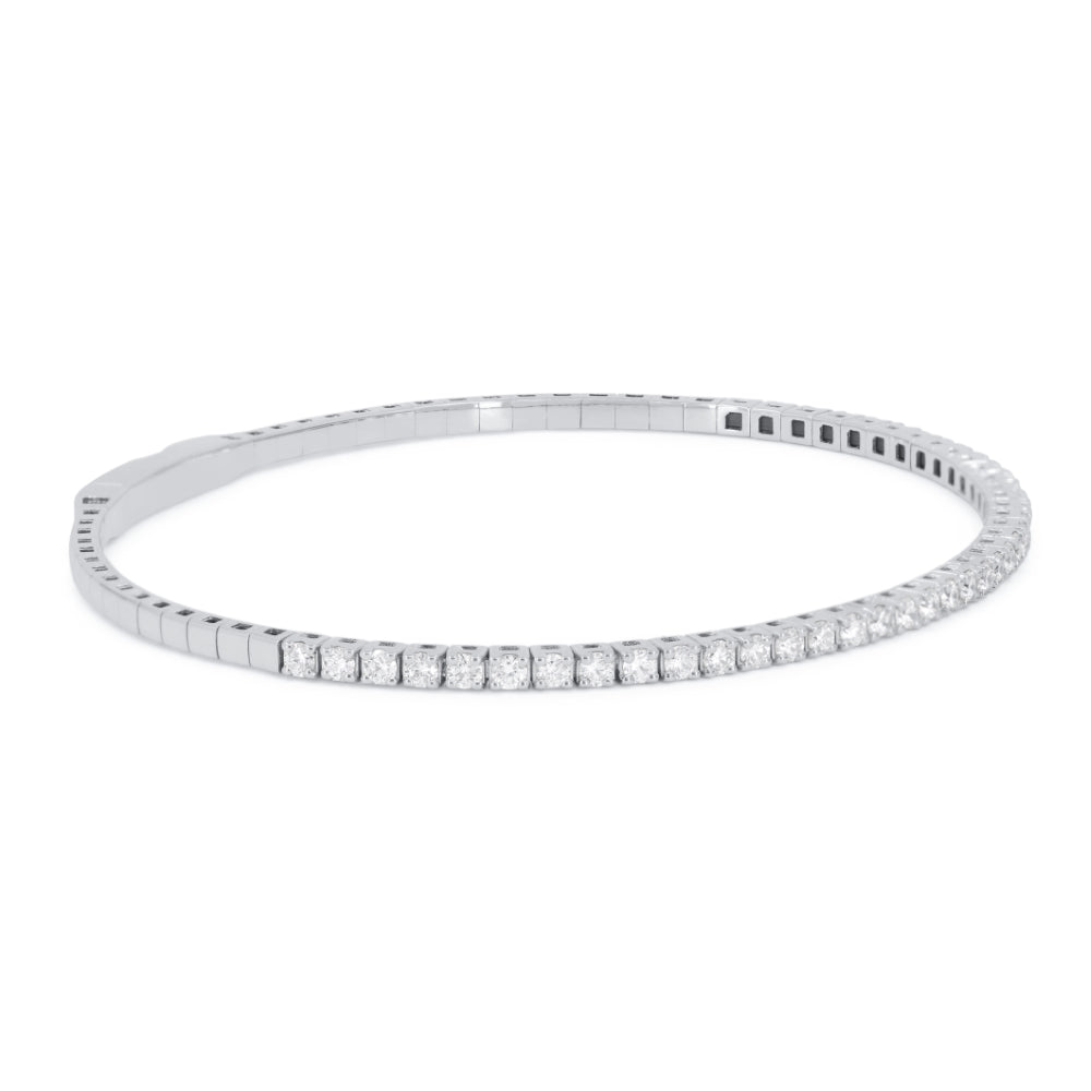 Beautiful Hand Crafted 14K White Gold White Diamond Milano Collection Bangle