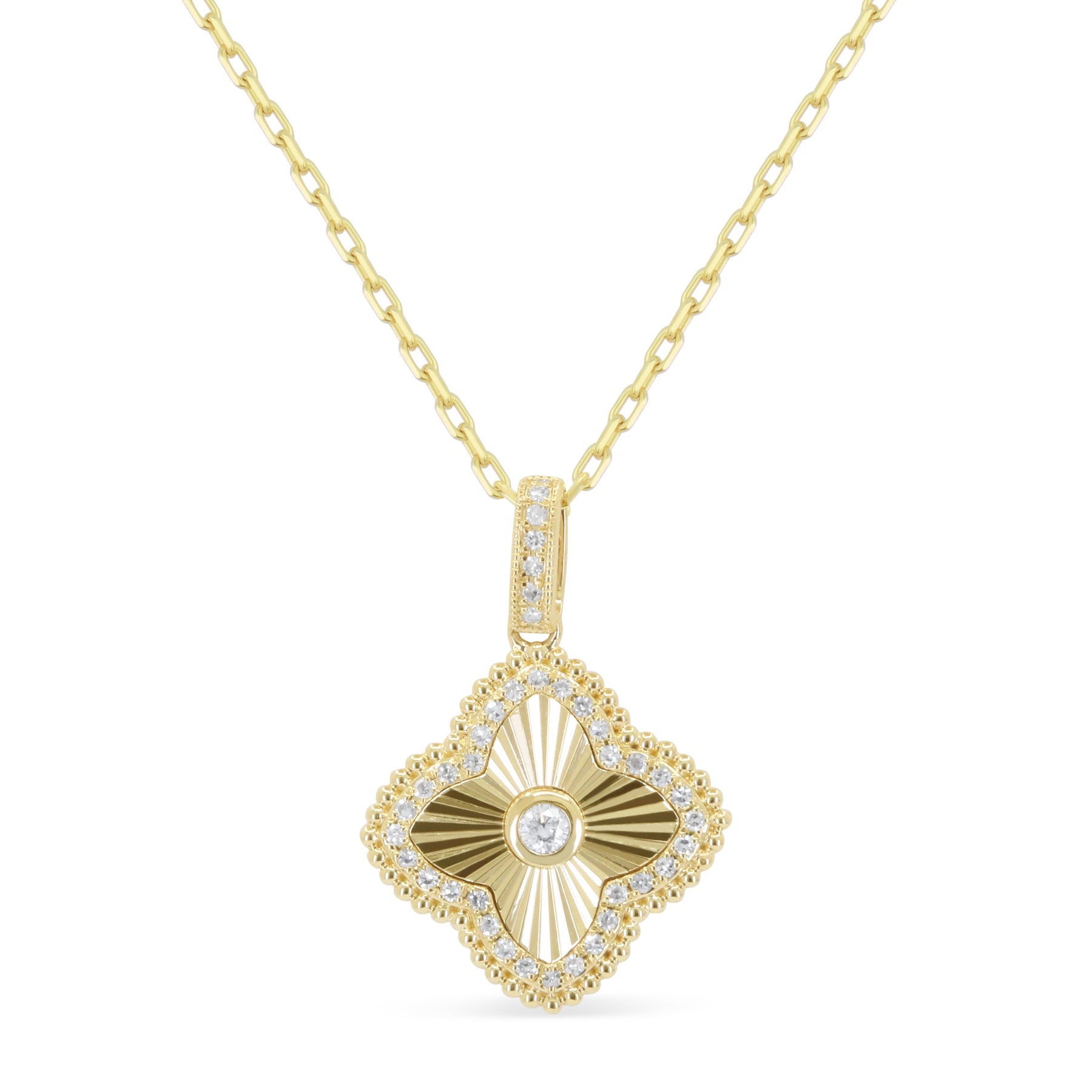 Beautiful Hand Crafted 14K Yellow Gold White Diamond Milano Collection Pendant