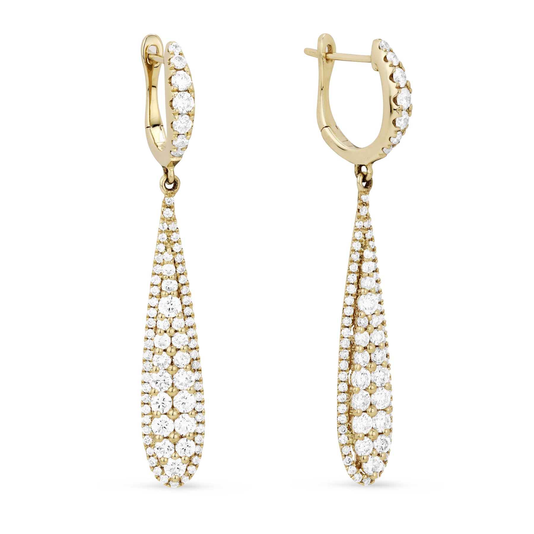 Beautiful Hand Crafted 14K Yellow Gold White Diamond Milano Collection Drop Dangle Earrings With A Lever Back Closure