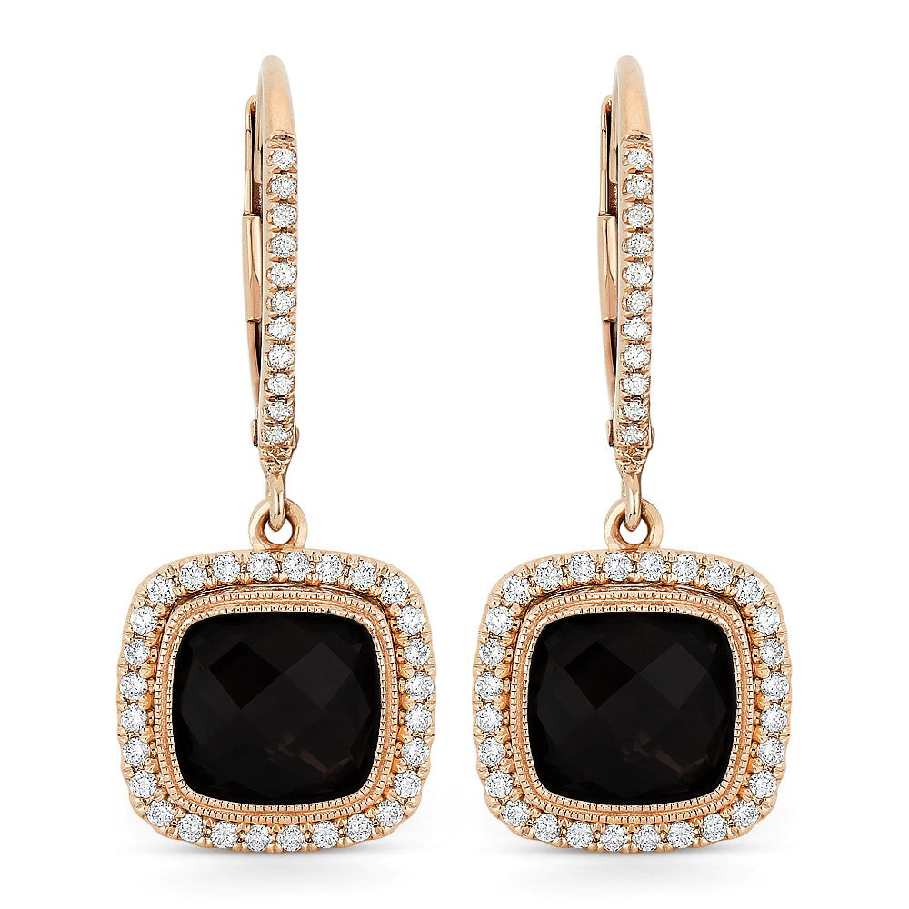 E1047AMP 14K Rose Gold Essentials Collection Amethyst And Diamond Drop Dangle Earrings With A Lever Back Closure