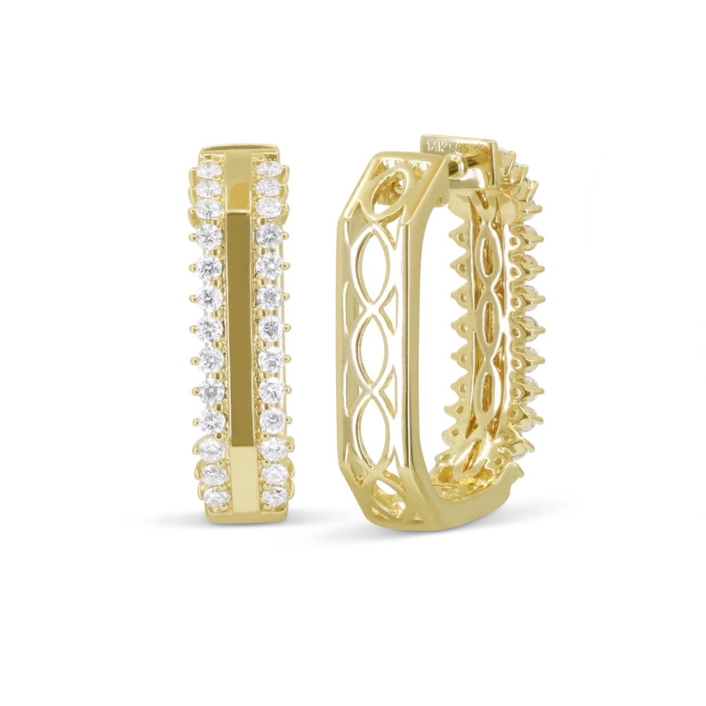 Beautiful Hand Crafted 14K Yellow Gold White Diamond Milano Collection Hoop Earrings With A Hoop Closure