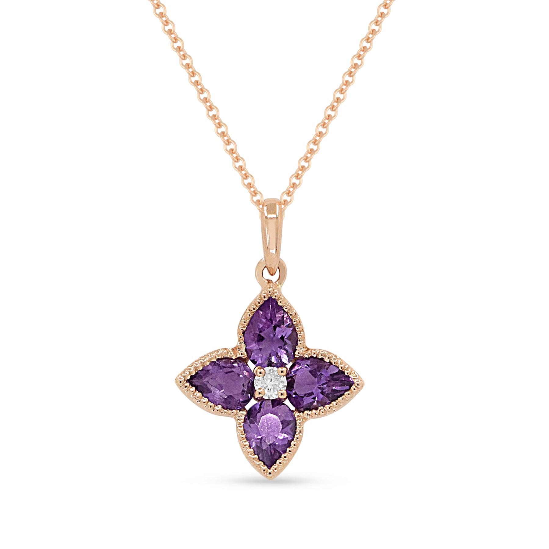 N1540AMP 14K Rose Gold Essentials Collection Amethyst And Diamond Pendant