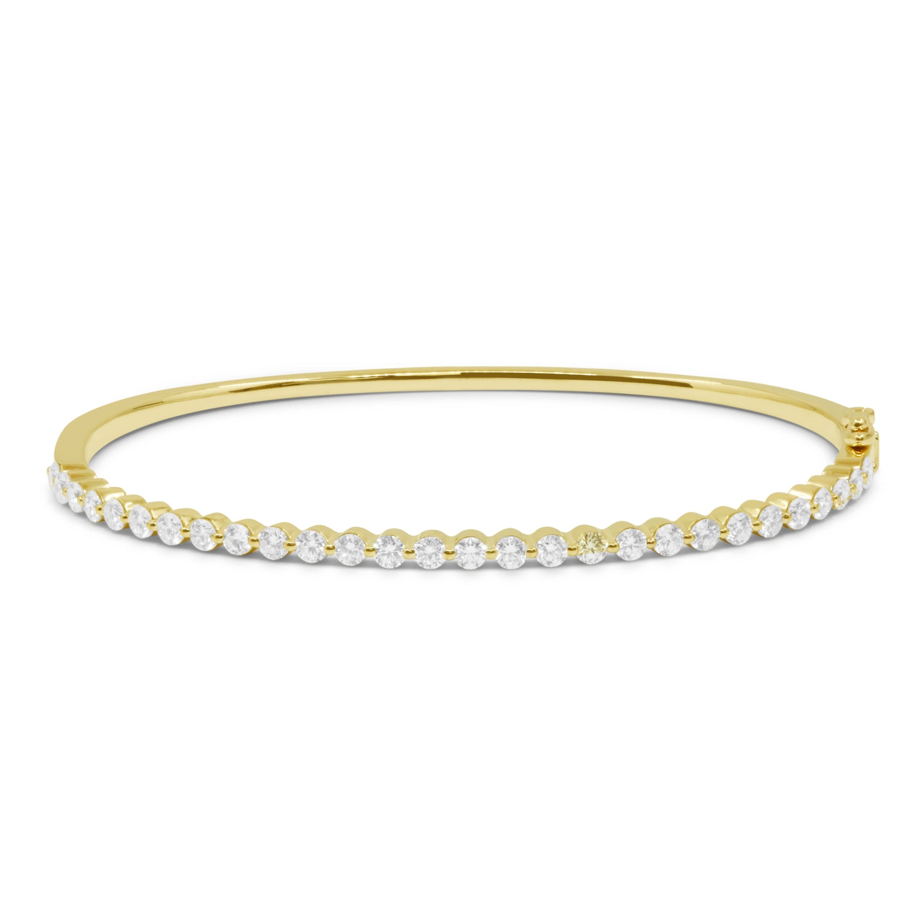 Beautiful Hand Crafted 14K Yellow Gold White Diamond Milano Collection Bangle