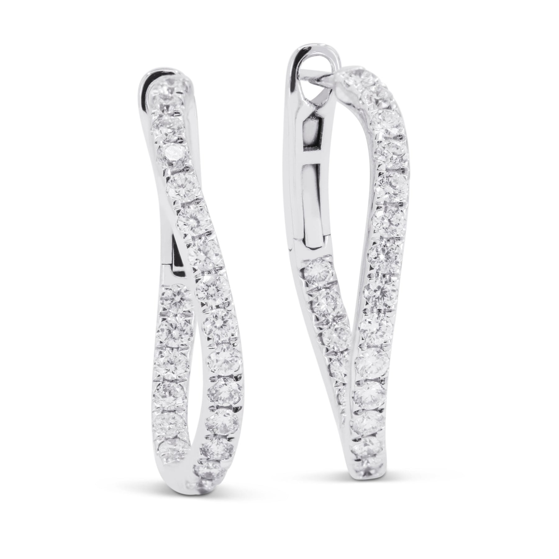 Beautiful Hand Crafted 14K White Gold  Milano Collection Hoop Earrings With A Hoop Closure