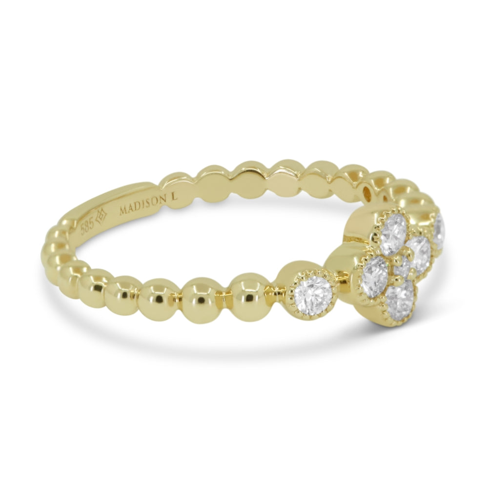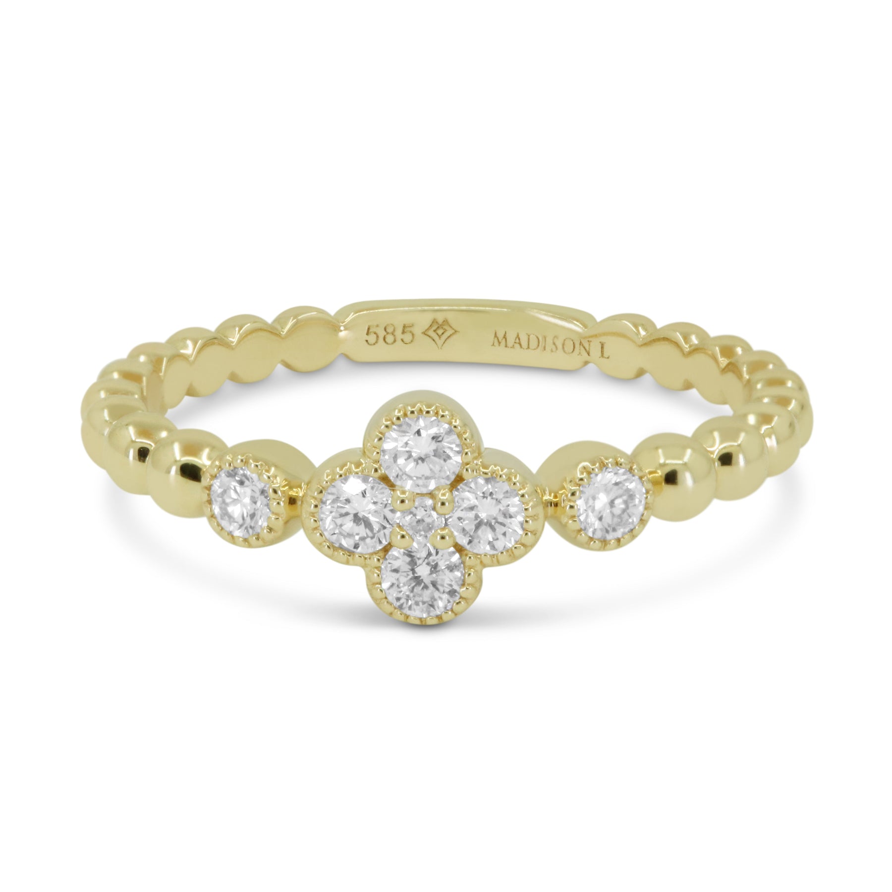 Beautiful Hand Crafted 14K Yellow Gold White Diamond Milano Collection Ring