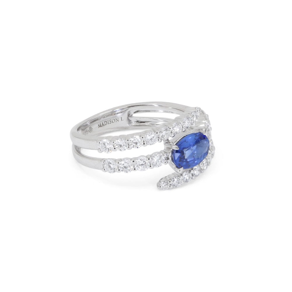 Beautiful Hand Crafted 14K White Gold  Sapphire And Diamond Arianna Collection Ring