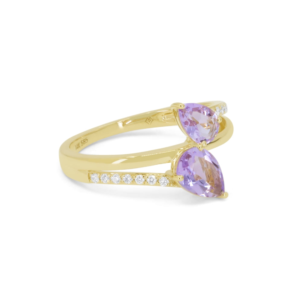 Beautiful Hand Crafted 14K Yellow Gold  Pink Amethyst And Diamond Essentials Collection Ring