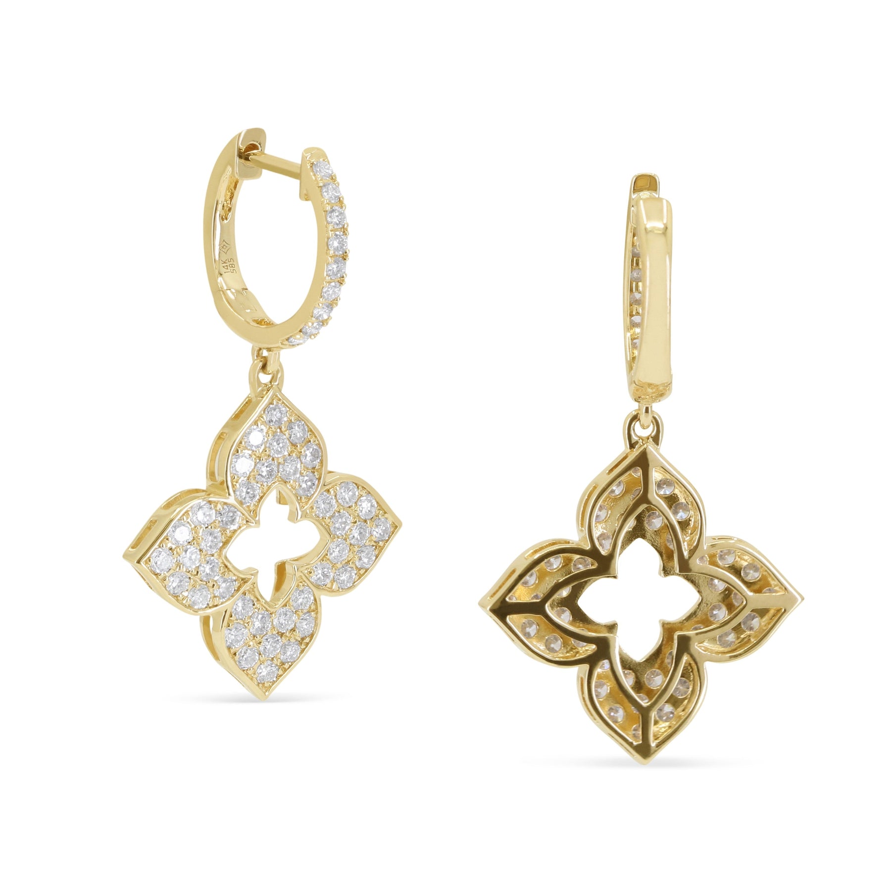 E1462Y 14K Yellow Gold Milano Collection White Diamond Drop Dangle Earrings With A Lever Back Closure