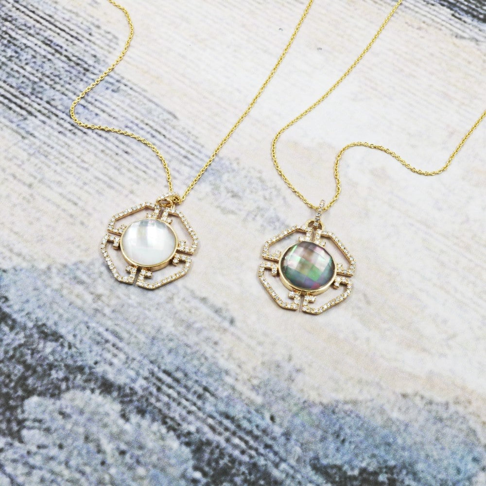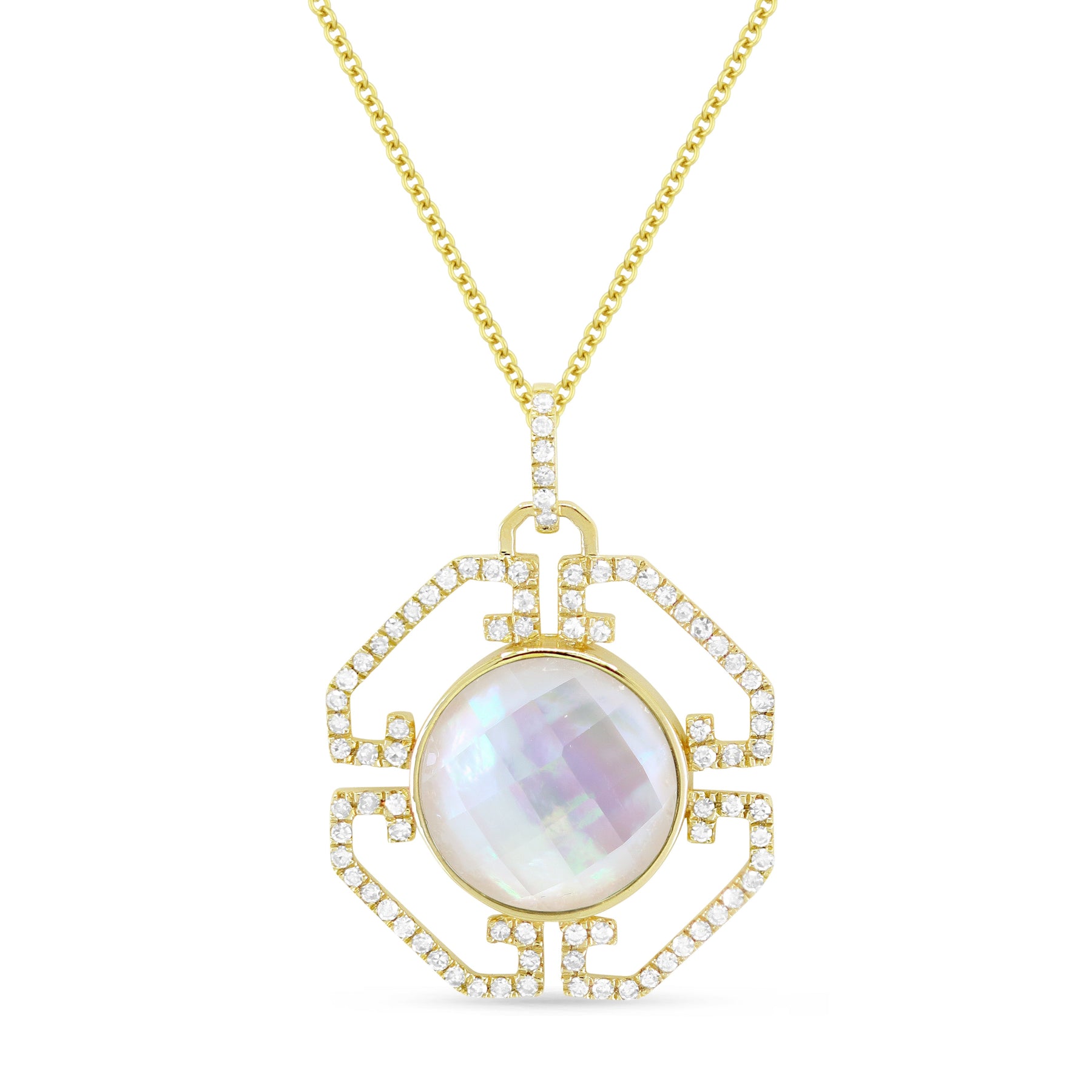 Beautiful Hand Crafted 14K Yellow Gold 10MM Mother Of Pearl And Diamond Essentials Collection Pendant