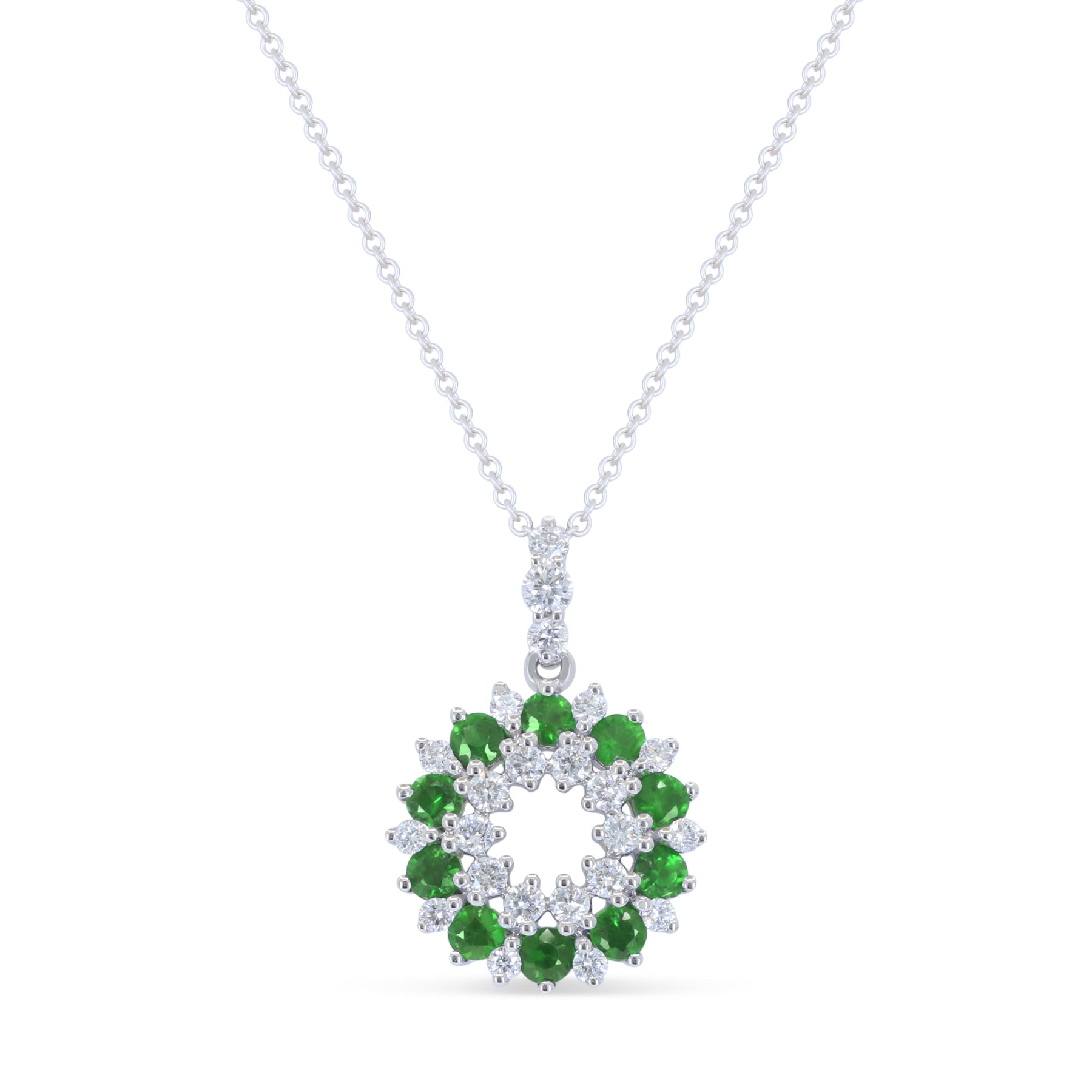 Beautiful Hand Crafted 14K White Gold  Emerald And Diamond Arianna Collection Pendant