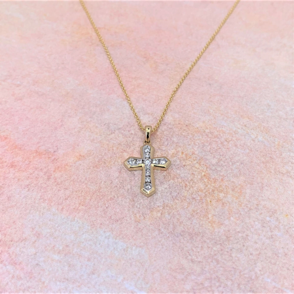 Crafted in solid 14K gold, this Madison L Jewelry Religious Collection pendant featuring a Crucifix Cross motif is designed for everyday wear with timeless appeal.