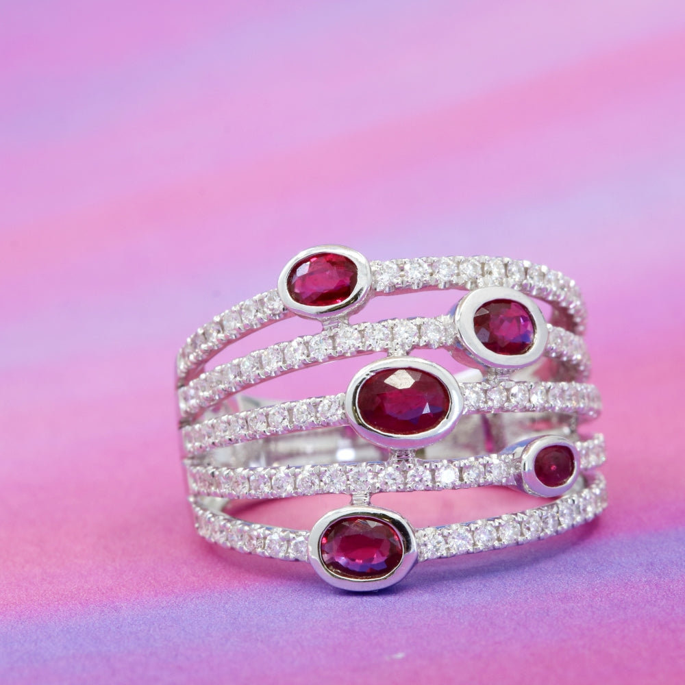 Beautiful Hand Crafted 14K White Gold  Ruby And Diamond Arianna Collection Ring