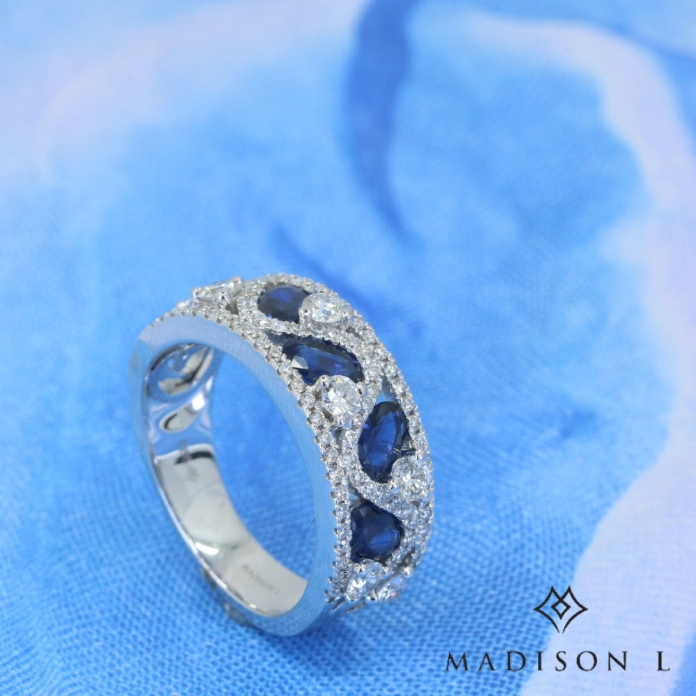 Beautiful Hand Crafted 14K White Gold  Sapphire And Diamond Arianna Collection Ring