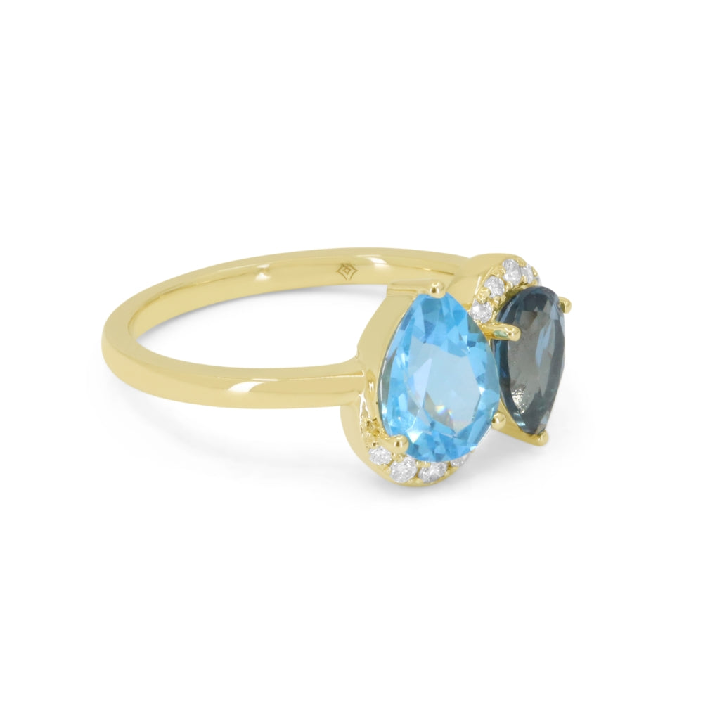 Beautiful Hand Crafted 14K Yellow Gold  Swiss Blue Topaz & London Blue Topaz And Diamond Essentials Collection Ring