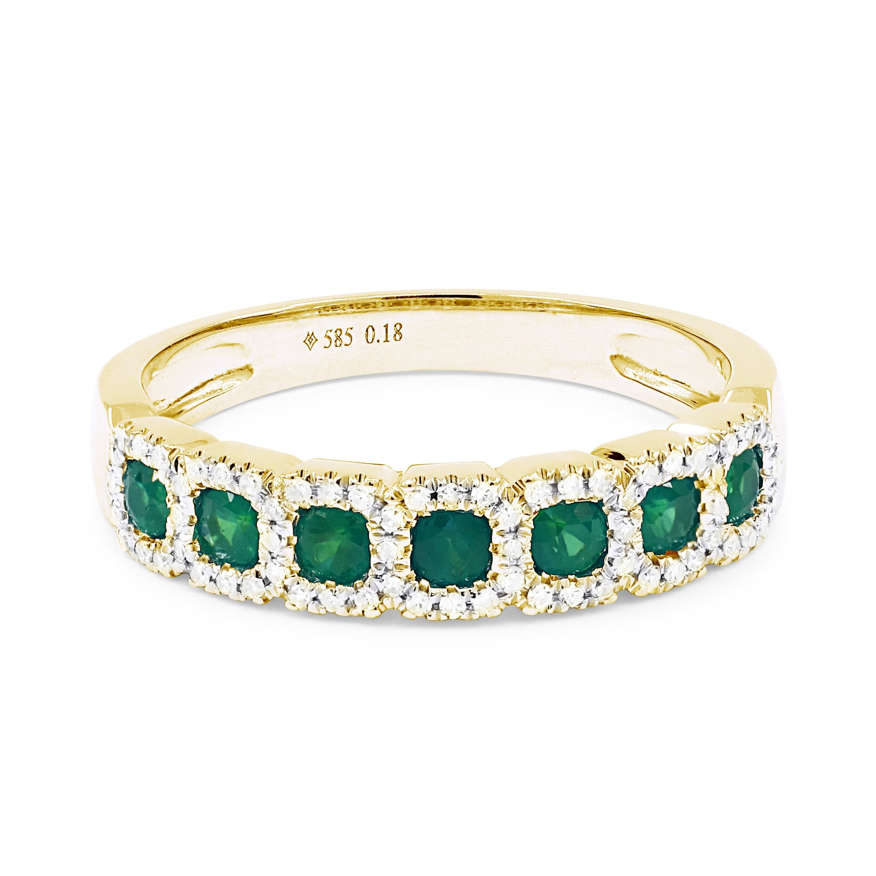 Beautiful Hand Crafted 14K Yellow Gold 3MM Emerald And Diamond Arianna Collection Ring