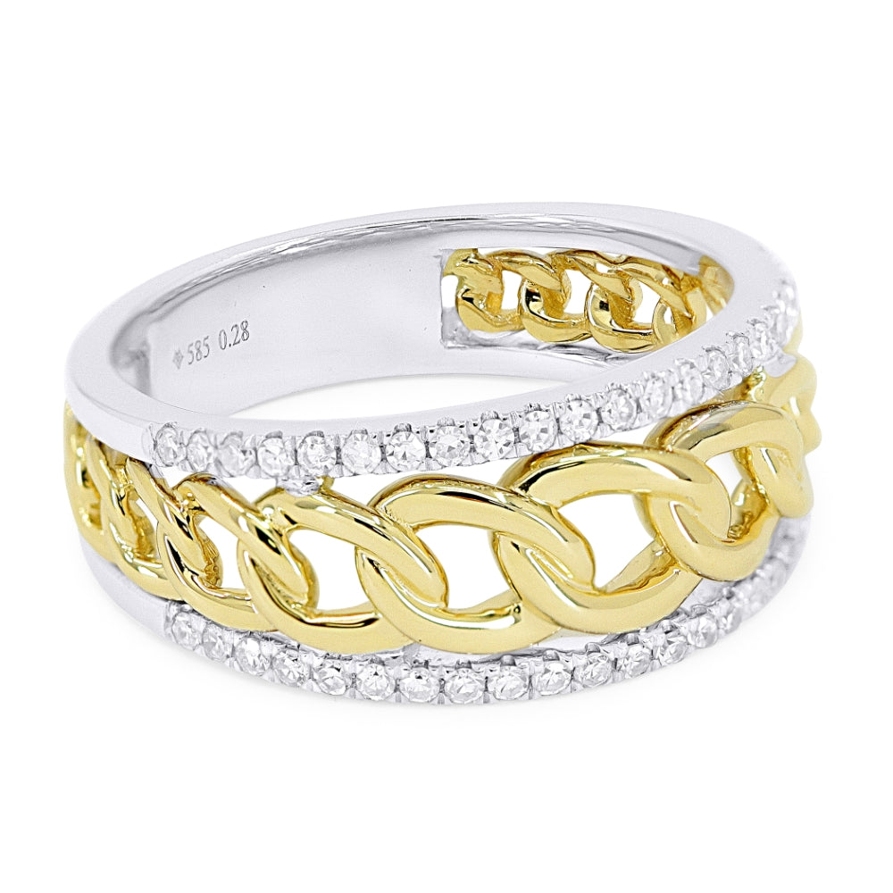 Beautiful Hand Crafted 14K Two Tone Gold White Diamond Milano Collection Ring