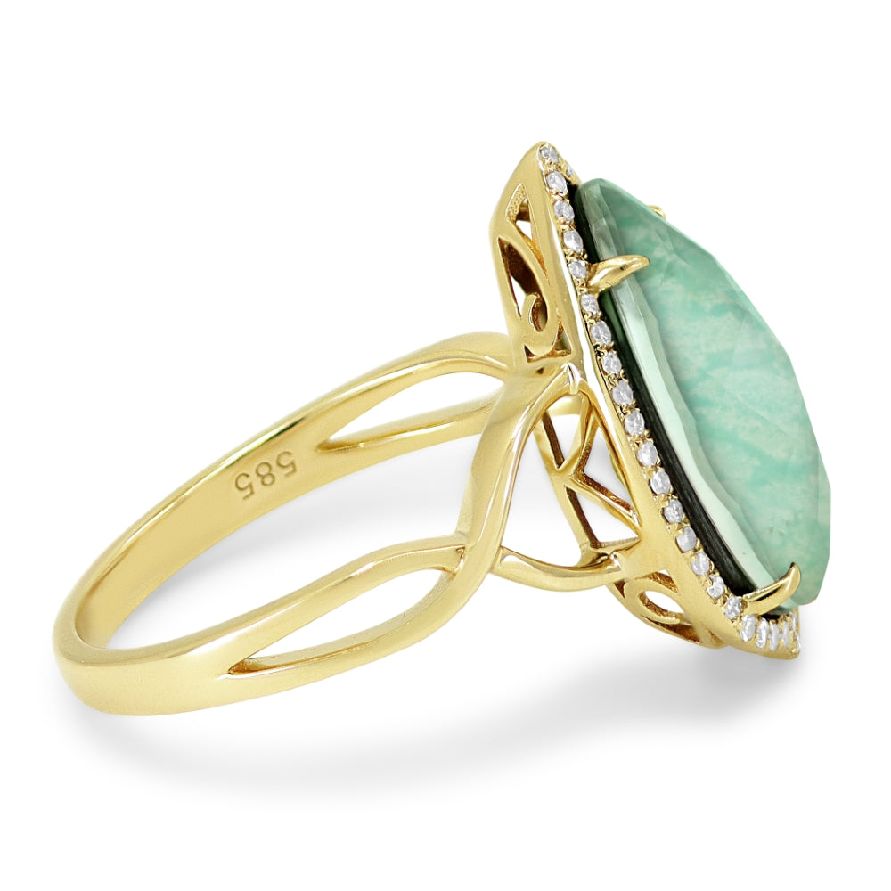 R1566AMZQUY 14K Yellow Gold Essentials Collection Amazonite And Diamond Ring