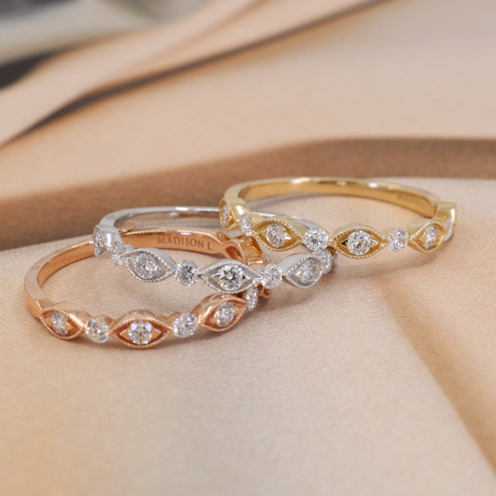 Crafted in solid 14K gold, this Madison L Jewelry Bridal Collection ring featuring a Stackable motif is designed to sit comfortably for everyday wear with timeless appeal.