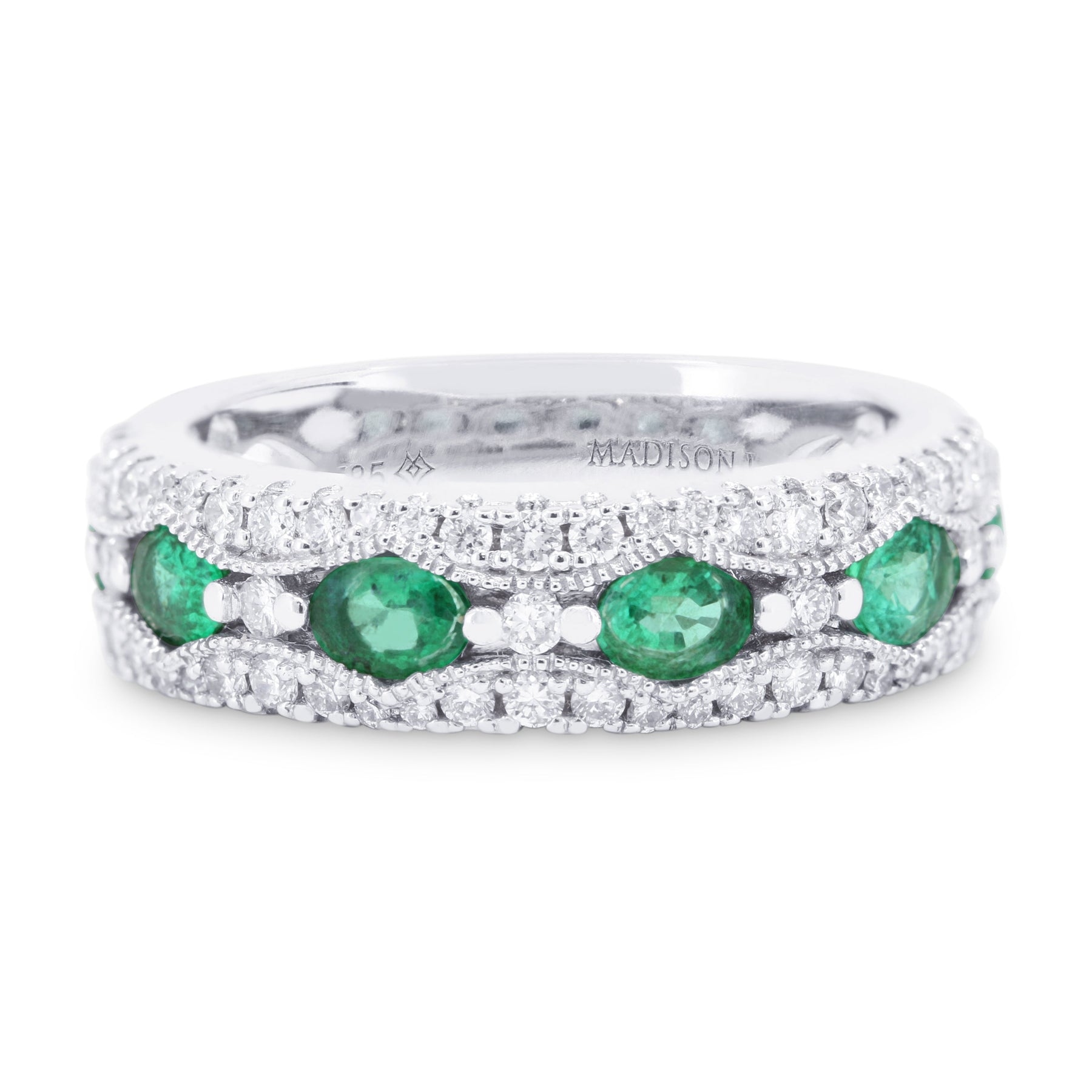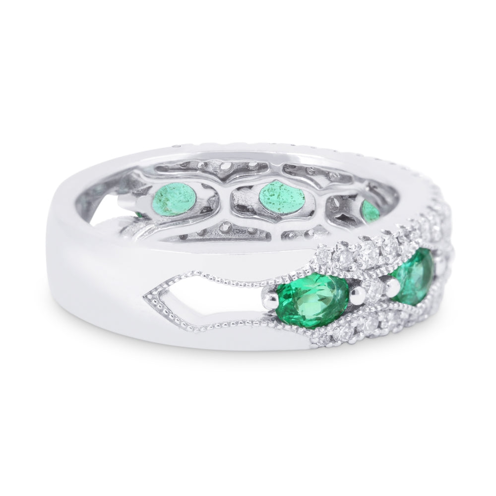 Beautiful Hand Crafted 14K White Gold  Emerald And Diamond Arianna Collection Ring