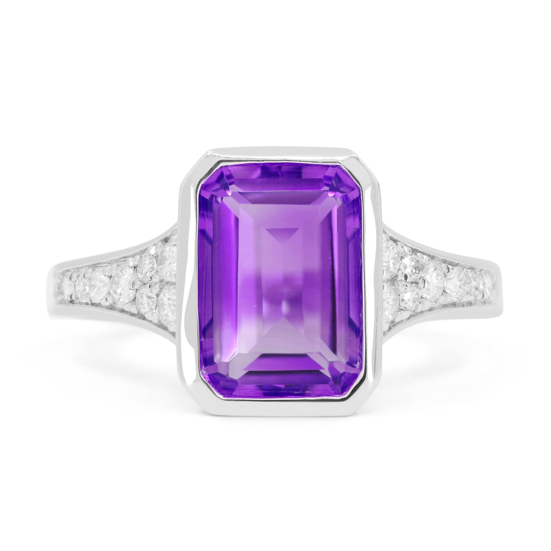 R1688AMW 14K White Gold Essentials Collection Amethyst And Diamond Ring