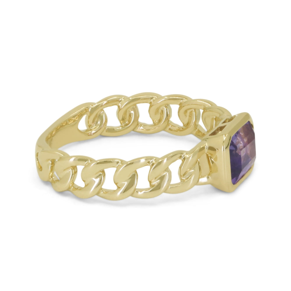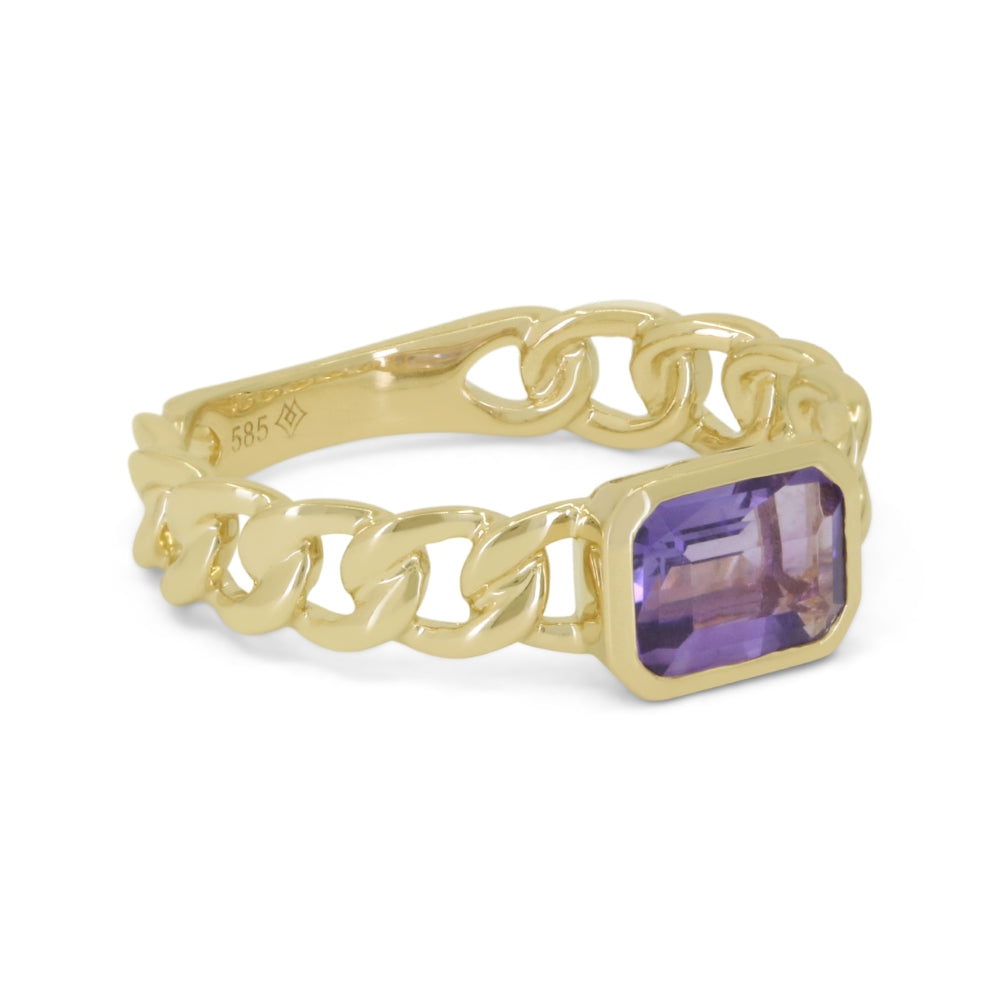 Beautiful Hand Crafted 14K Yellow Gold 5X7MM Amethyst And Diamond Essentials Collection Ring