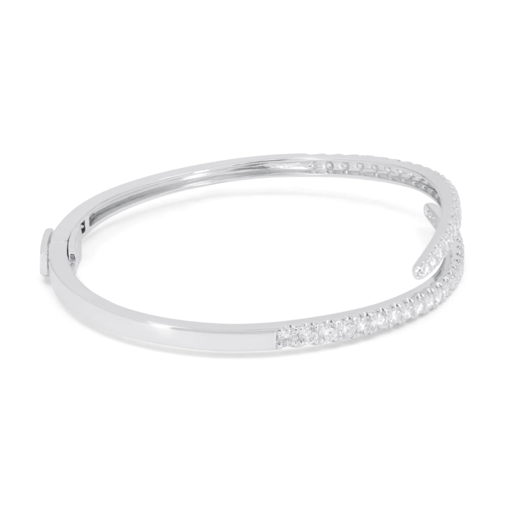 Beautiful Hand Crafted 14K White Gold White Diamond Milano Collection Bangle