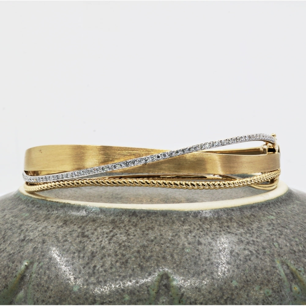 Beautiful Hand Crafted 14K Yellow Gold White Diamond Milano Collection Bangle