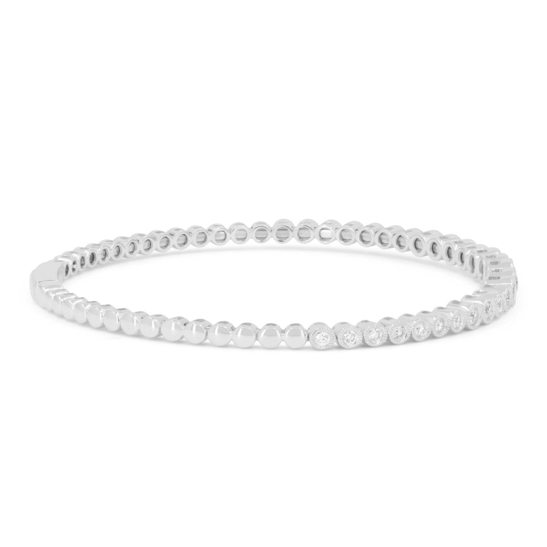 Beautiful Hand Crafted 14K White Gold White Diamond Milano Collection Bangle