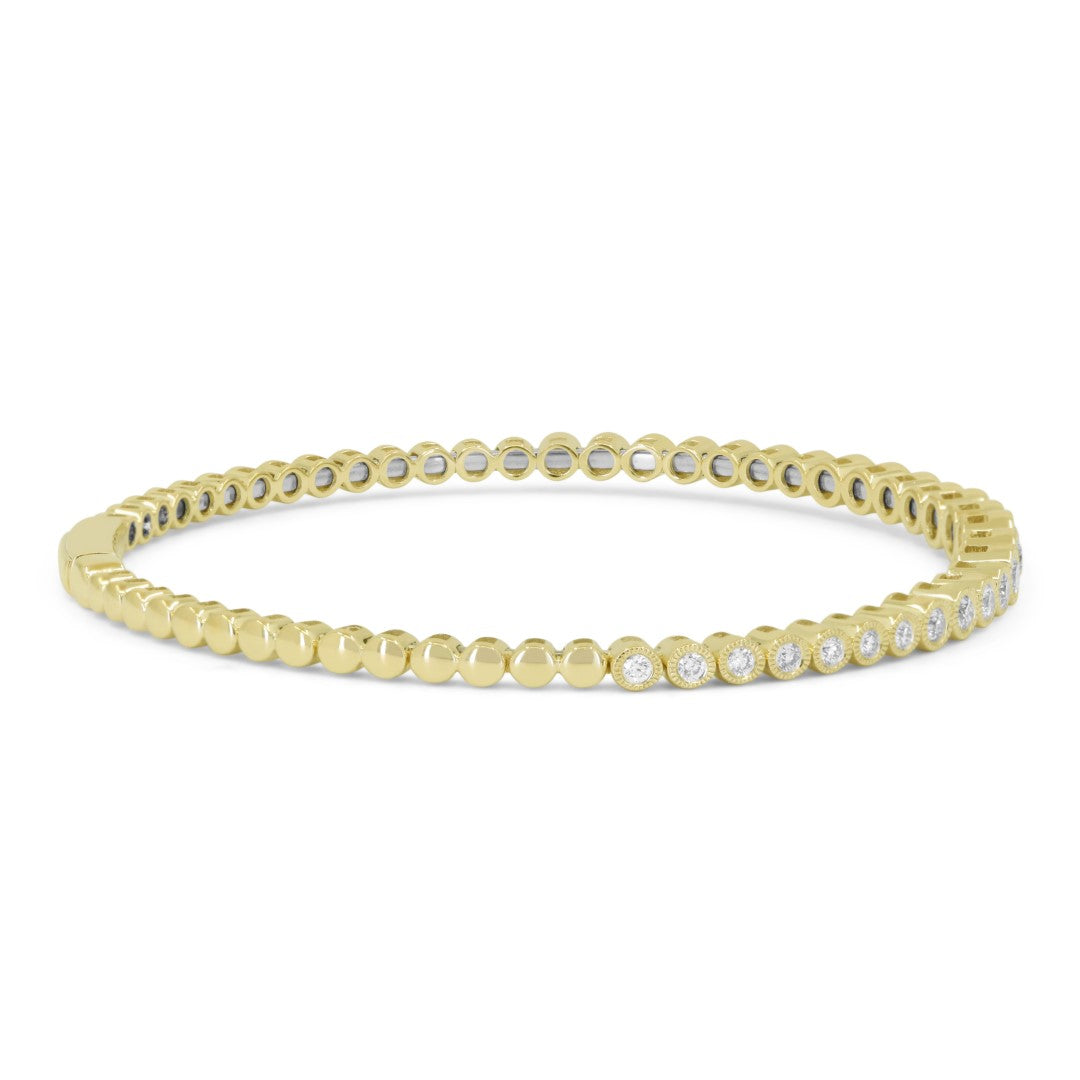 Beautiful Hand Crafted 14K Yellow Gold White Diamond Milano Collection Bangle