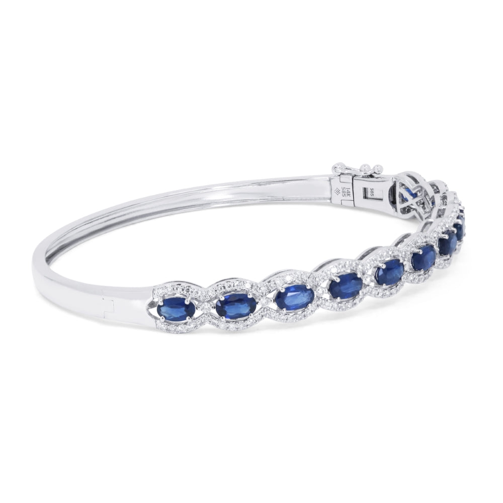 Beautiful Hand Crafted 14K White Gold  Sapphire And Diamond Arianna Collection Bangle