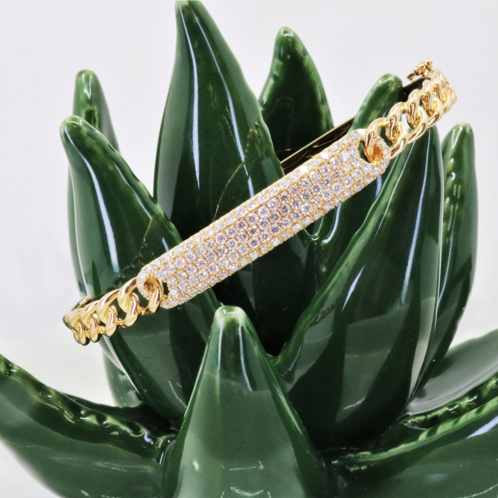 Beautiful Hand Crafted 14K Yellow Gold White Diamond Milano Collection Bangle