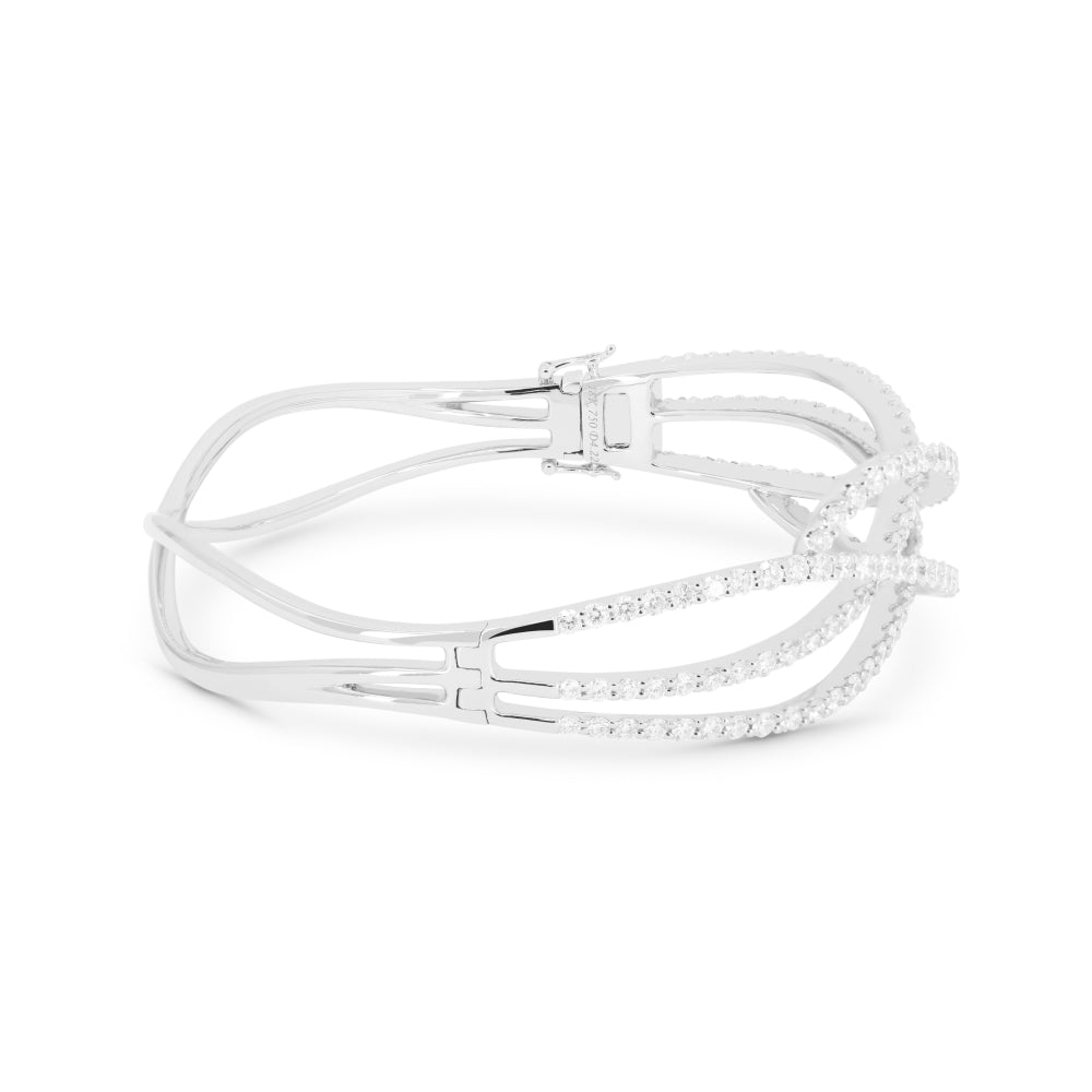 Beautiful Hand Crafted 14K White Gold White Diamond Milano Collection Bangle