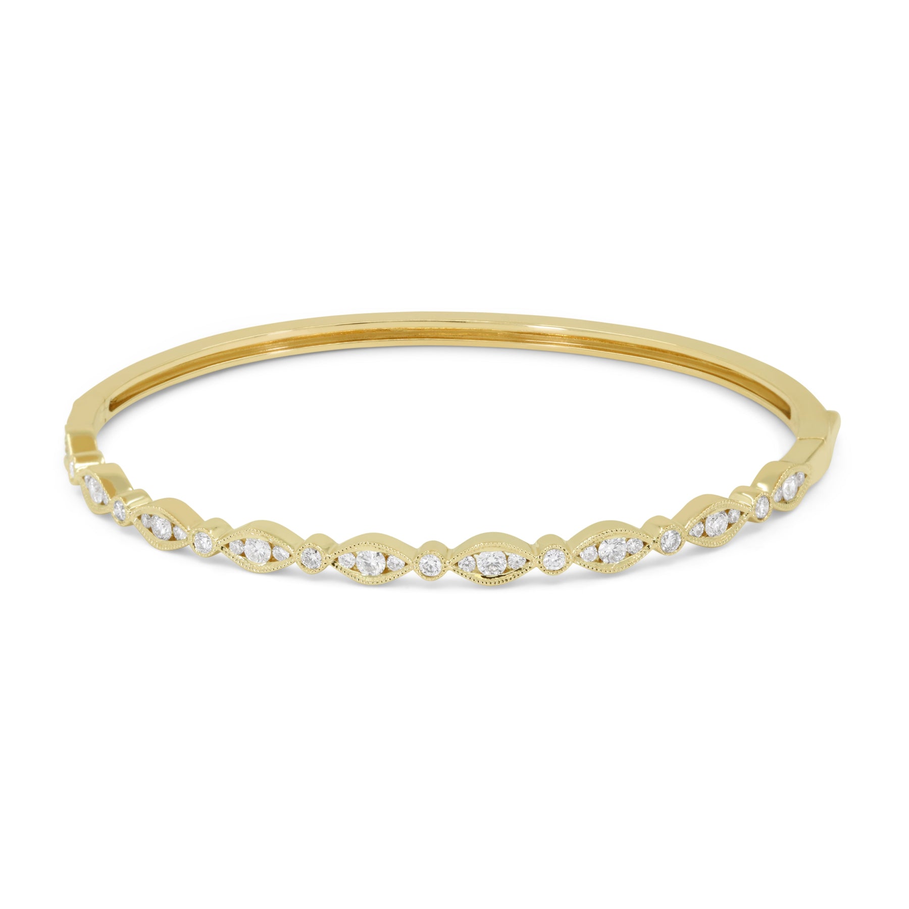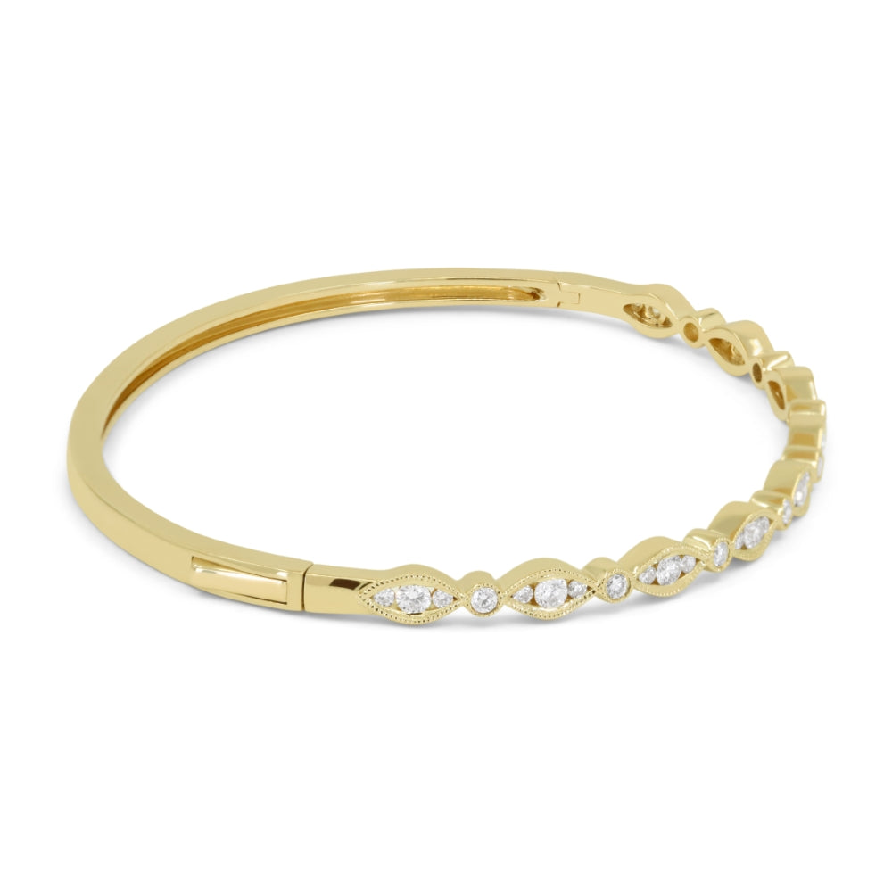 Beautiful Hand Crafted 14K Yellow Gold White Diamond Milano Collection Bangle