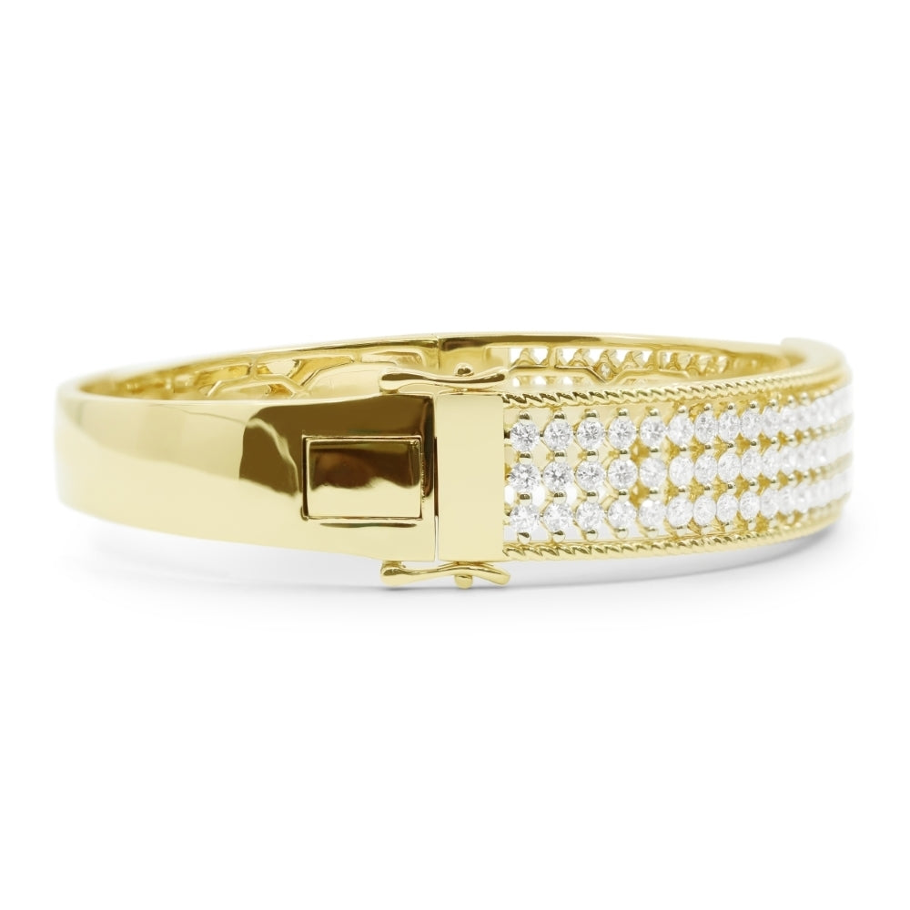 Crafted in solid 14K gold, this Madison L Jewelry Milano Collection bangle featuring a Cocktail motif is perfect for wearing solo or stacking with timeless appeal.