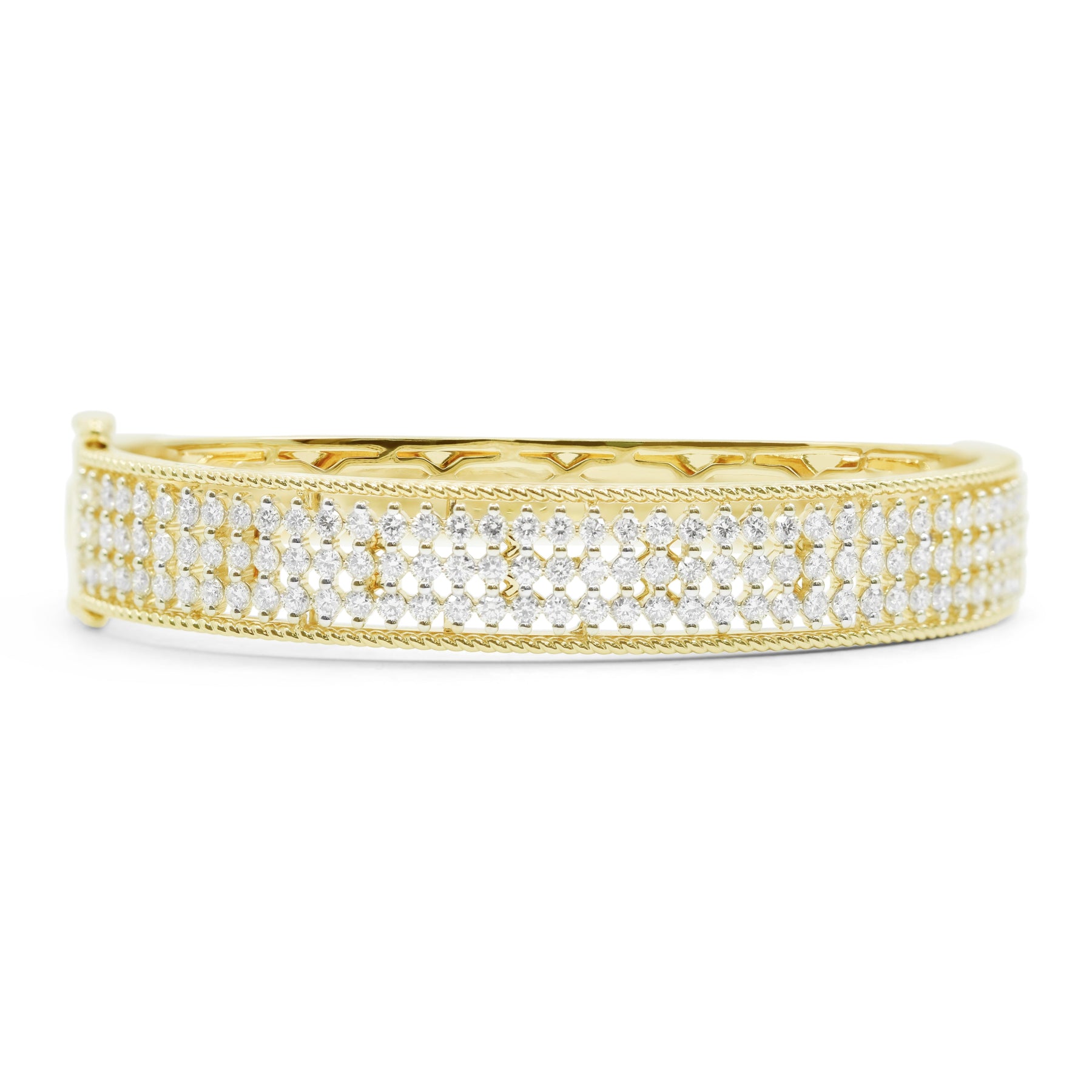 Beautiful Hand Crafted 14K Yellow Gold White Diamond Milano Collection Bangle