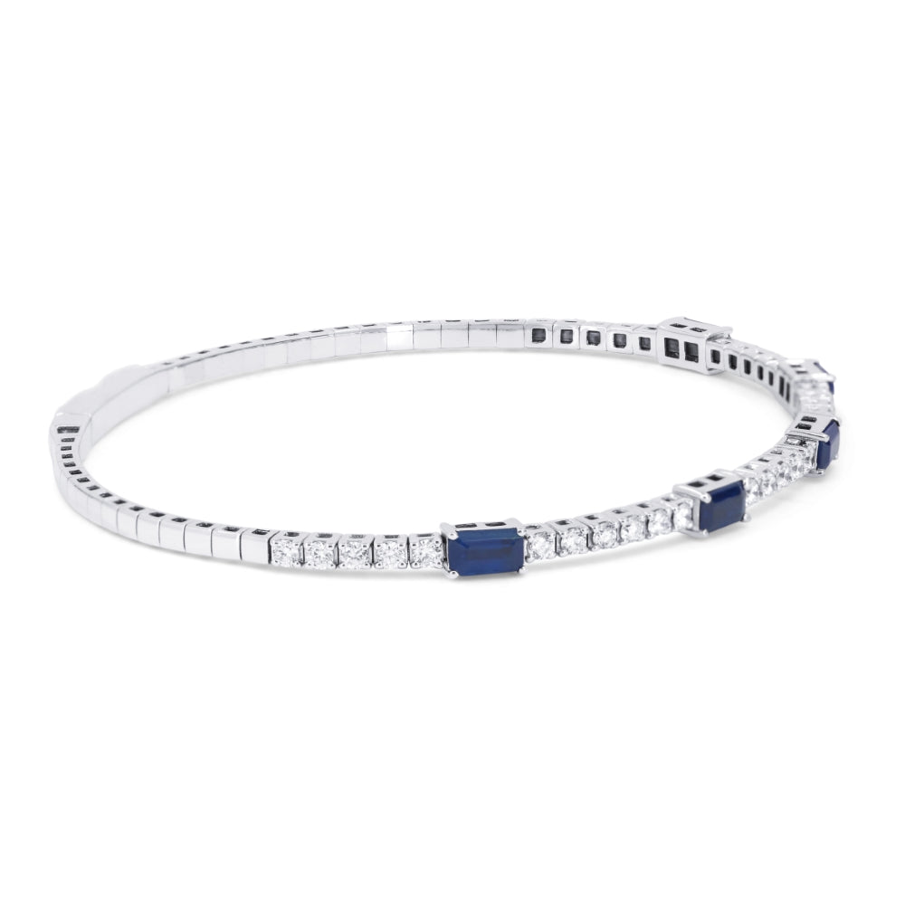 Beautiful Hand Crafted 14K White Gold 3X5MM Sapphire And Diamond Arianna Collection Bangle