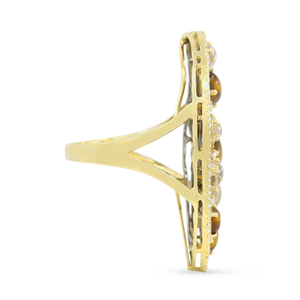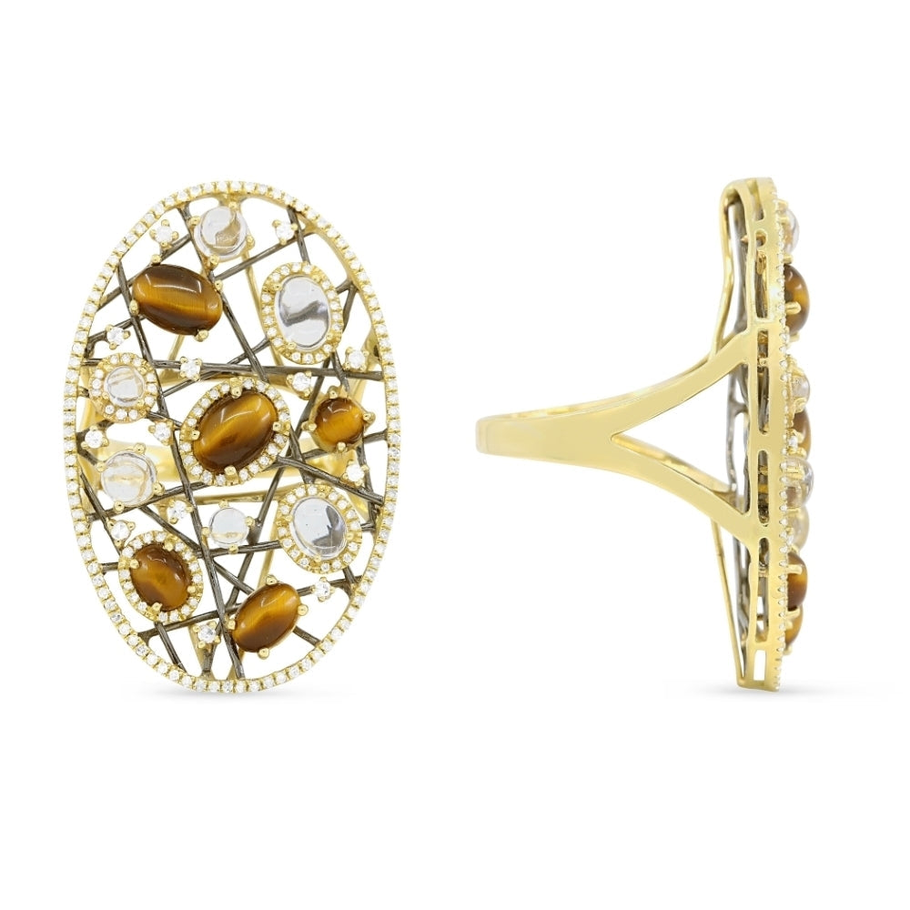 DR12403 14K Yellow Gold Eclectica Collection Tigers Eye And Diamond Ring