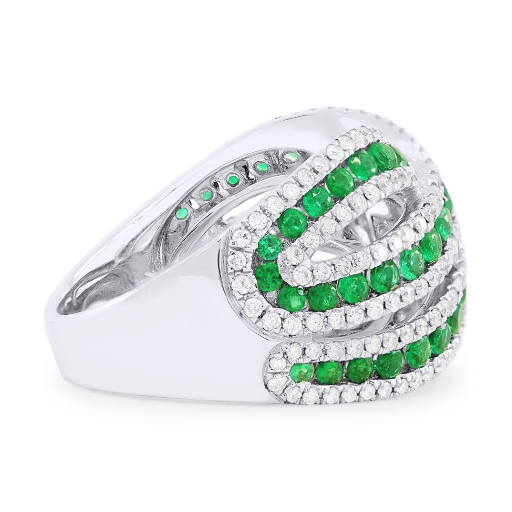 Beautiful Hand Crafted 18K White Gold  Emerald And Diamond Arianna Collection Ring